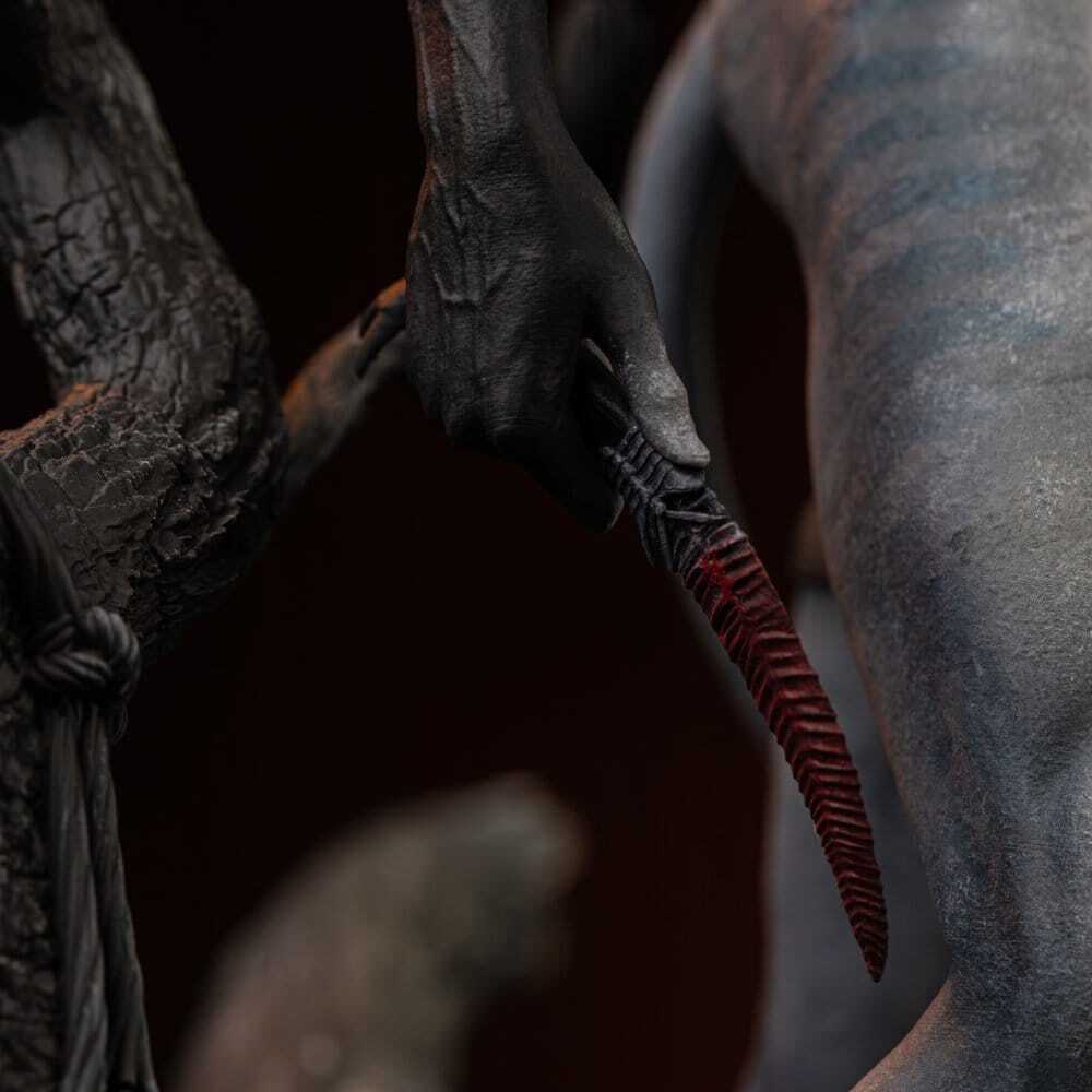 Statuetta in polystone in scala 1/10, dimensioni circa 36 x 26 x 17,5 cm sulla base, con licenza ufficiale.