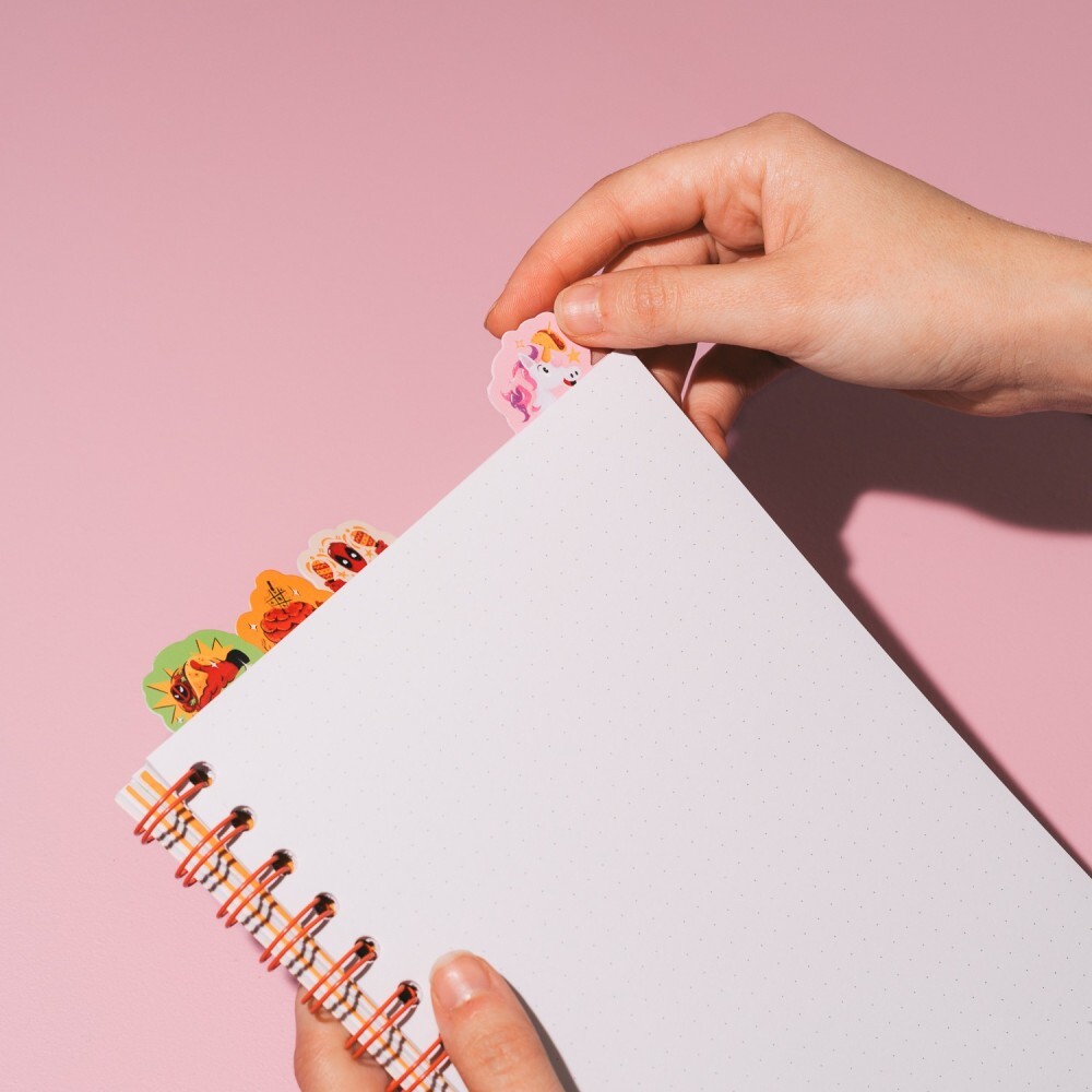 Scatena la tua creatività con questo quaderno Marvel dedicato a Deadpool ! Questo quaderno in formato A5 (14,8 x 21 cm) è dotato di una copertina in polipropilene da 0,5 mm e di una rilegatura a spirale per un facile utilizzo. Include 4 divisori in polipropilene con linguette superiori e 80 fogli (160 pagine) di carta da 80 g/m², ogni pagina personalizzata con motivi a tema Deadpool. Perfetto per appunti, schizzi o per pianificare la tua prossima avventura.
