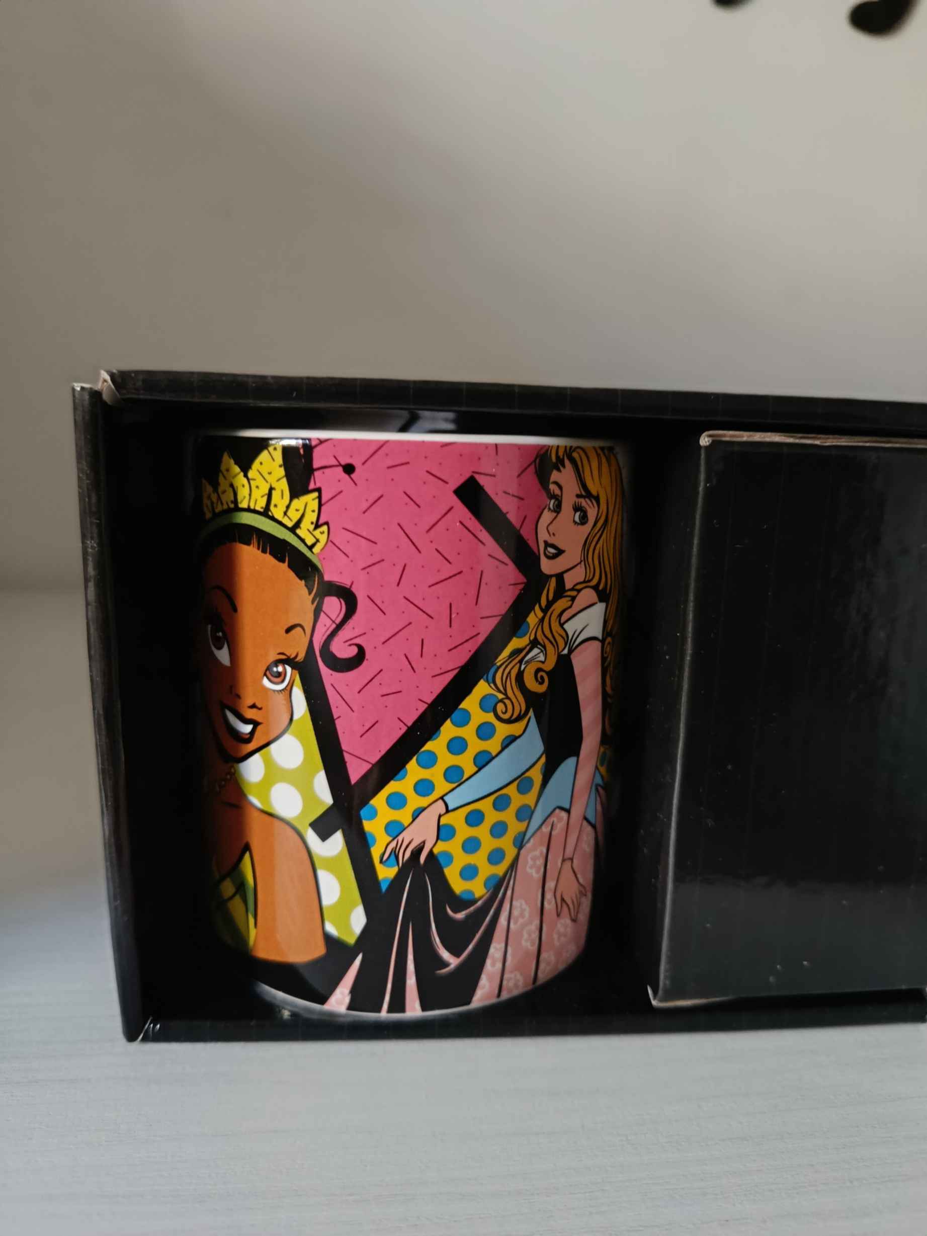 La Tazza Princess di Disney Britto è un accattivante oggetto per la casa, che combina i design iconici dei personaggi Disney con lo straordinario stile artistico di Romero Britto. Con Ariel, Tiana, Cenerentola e Aurora su uno sfondo di motivi e colori audaci, questa moneta è il regalo perfetto sia per gli amanti della Disney che per i fan dell'iconica opera di Romero Britto. Il manico a forma di cuore e la firma sul bordo interno rendono questo pezzo un oggetto davvero unico adatto ad ogni casa.