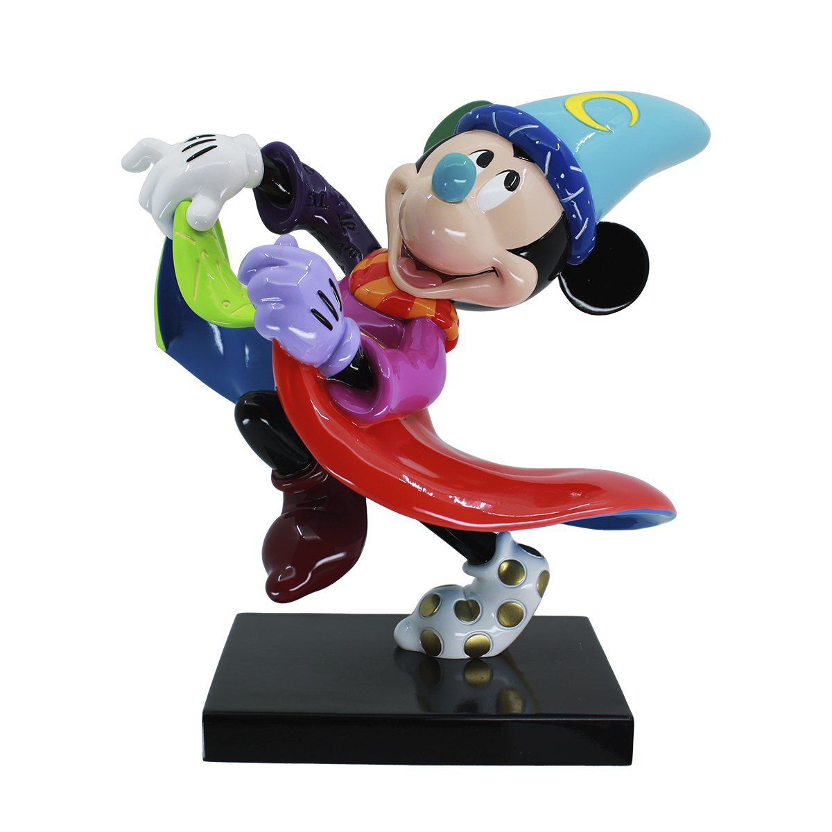 L'artista pop Romero Britto celebra l'85° anniversario del capolavoro animato di Walt Disney Fantasia con questo Sorcerer Topolino tratto dall'Apprendista stregone. Ogni scultura è dipinto a mano da abili artigiani nella vivace tavolozza di colori pop di Britto.