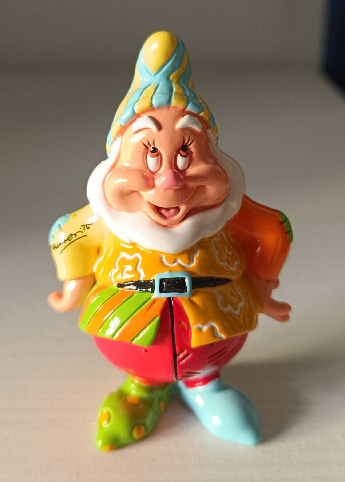 Romero Britto reinventa questo classico personaggio di «Biancaneve e i sette nani». Gongolo gode di un aggiornamento con molti motivi luminosi, audaci e colorati.