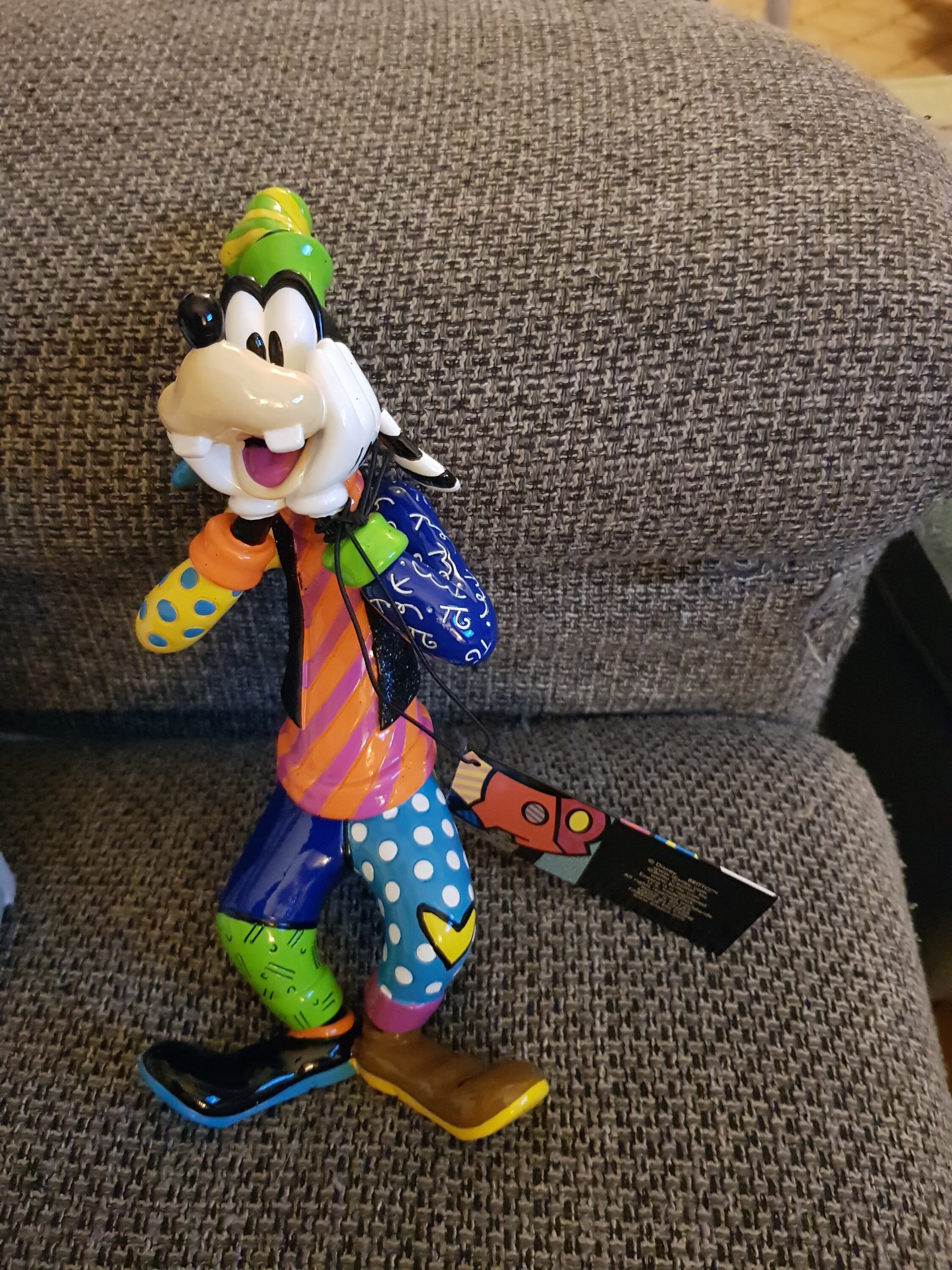Con colori vivaci e motivi affascinanti, l'artista pop contemporaneo Romero Britto cattura il divertimento e la fantasia di Disney. Ridisegnando il classico personaggio di Dingo che brilla nella sua giacca glitterata.
