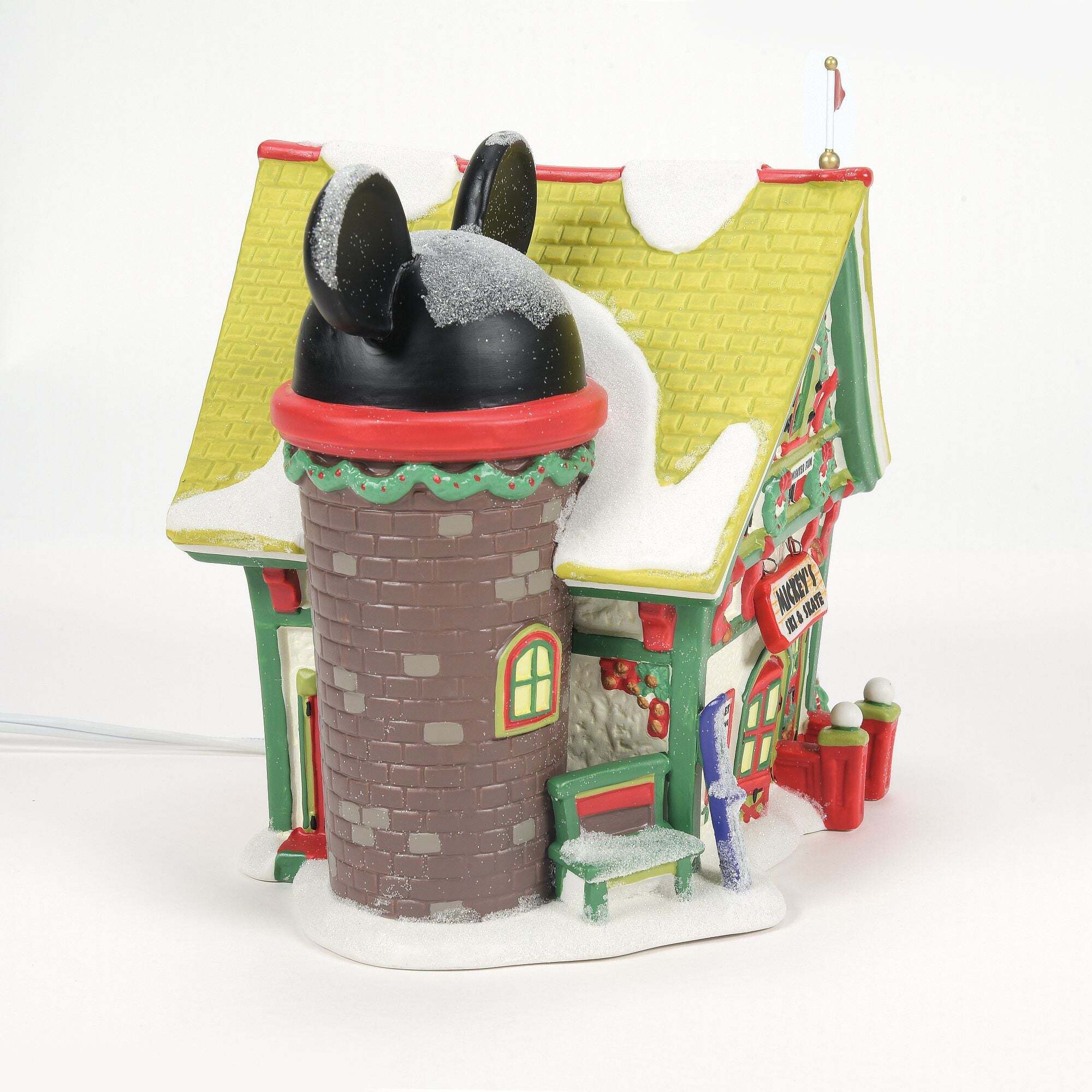 Il Villaggio di Topolino prende vita con l'universo Natale . Ogni pezzo illuminato è dotato di un cavo con interruttore e di una lampadina, ed è stato progettato dagli artisti del Dipartimento 56.