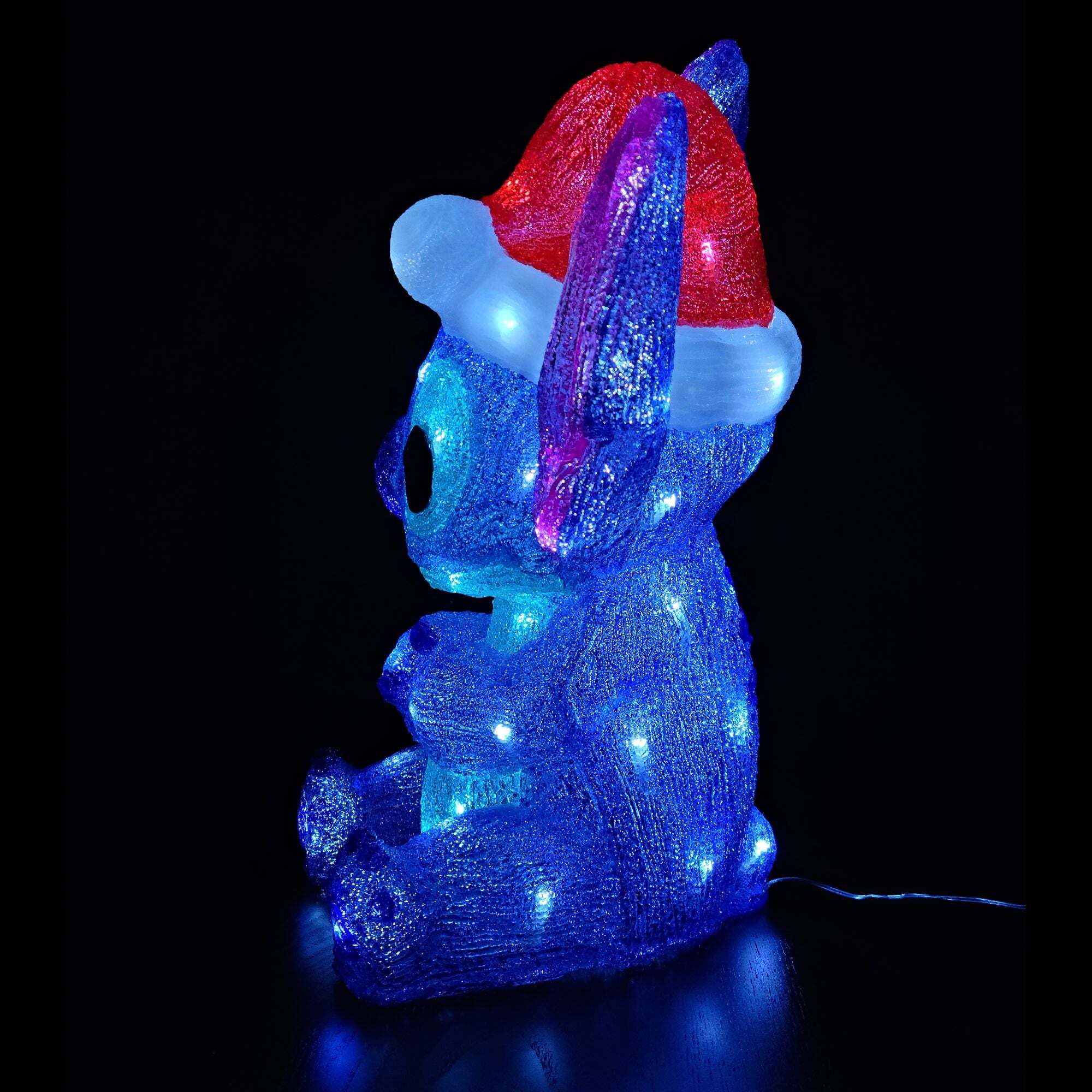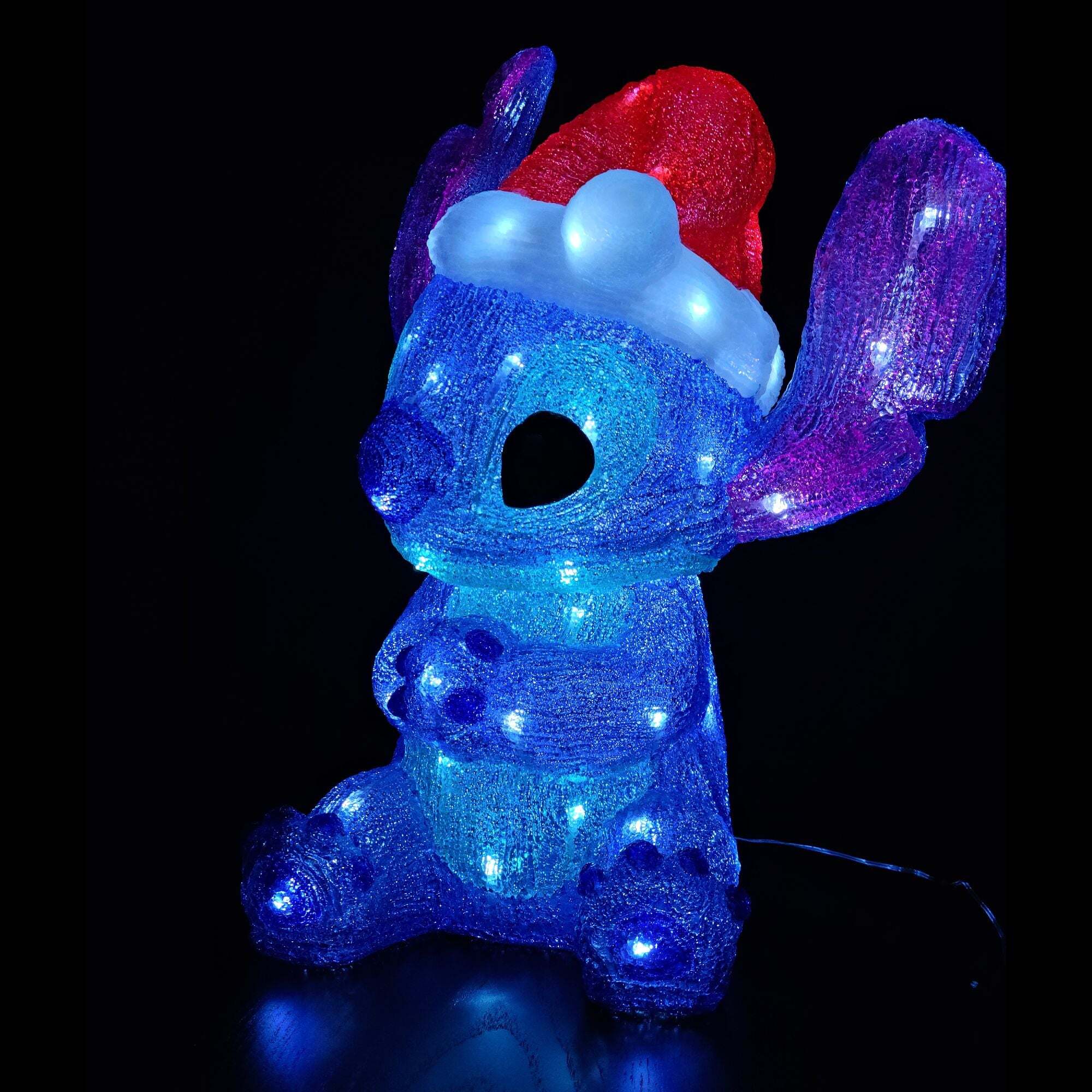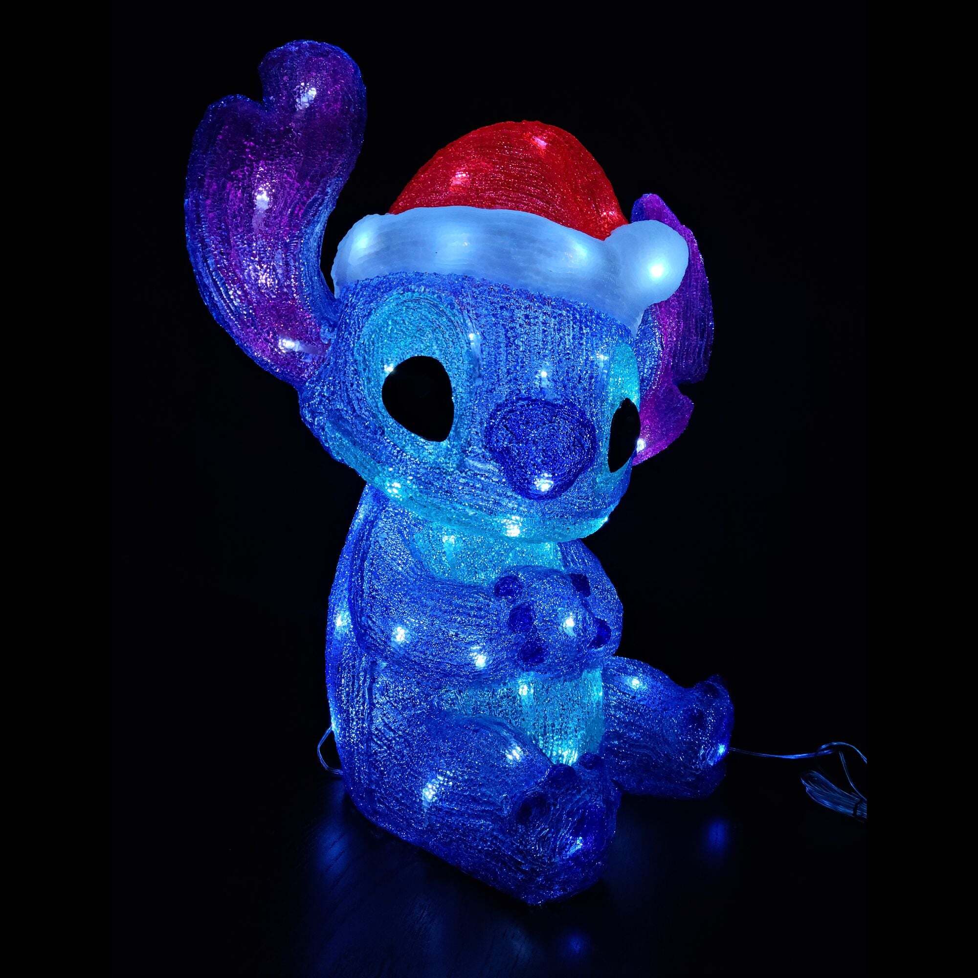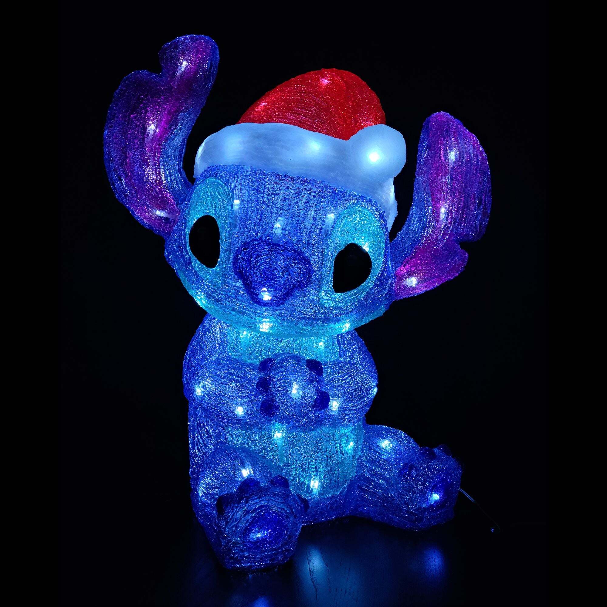 Stitch con il suo cappello festivo si sposa perfettamente con lo spirito natalizio e porterà un tocco di gioia alla tua casa o al tuo portico coperto con questa decorazione luminosa in acrilico. Perfetta per rallegrare le tue feste, si collega facilmente a una presa di corrente resistente alle intemperie per un effetto magico per tutta la stagione. Adattatore di corrente incluso.