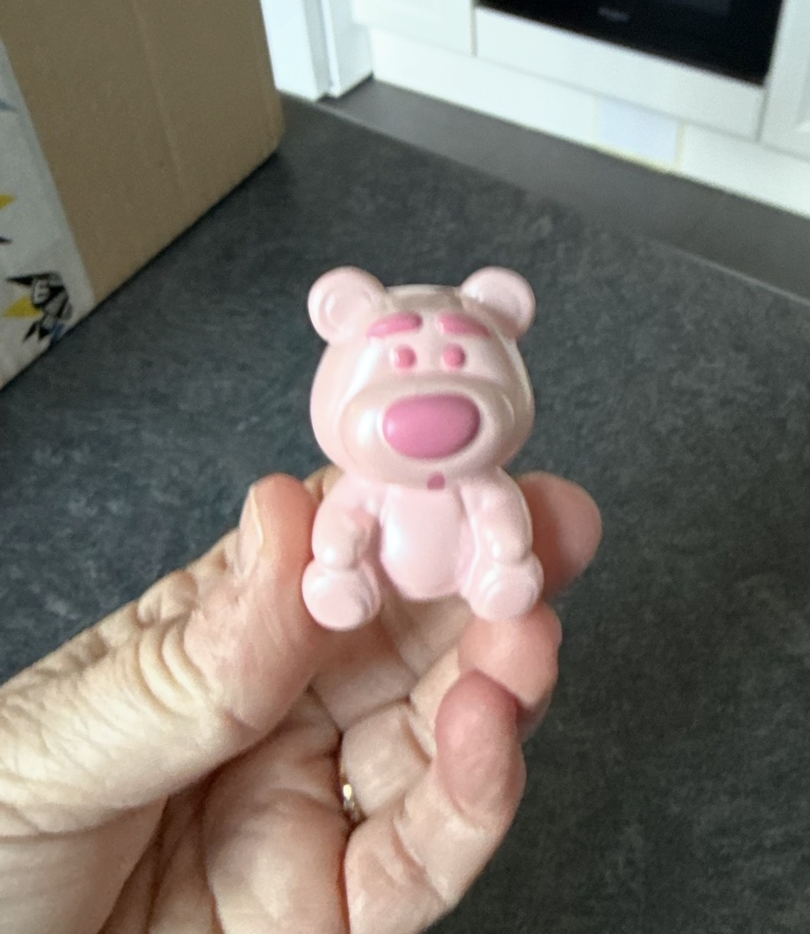 Produit Lotso tout mignon. Quelle surprise de découvrir à quoi il ressemble Très satisfaite du produit . Hâte d'en recommander