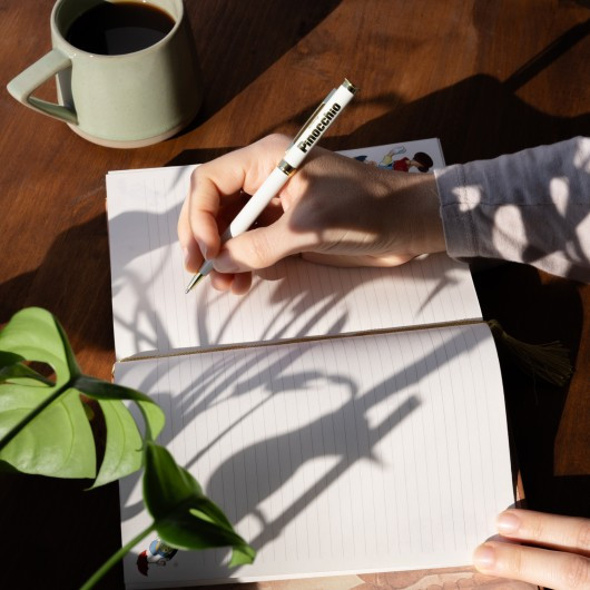 Che bel quaderno di Pinocchio. Mi piace tantissimo. Bellissima esecuzione. E anche la penna è al top.