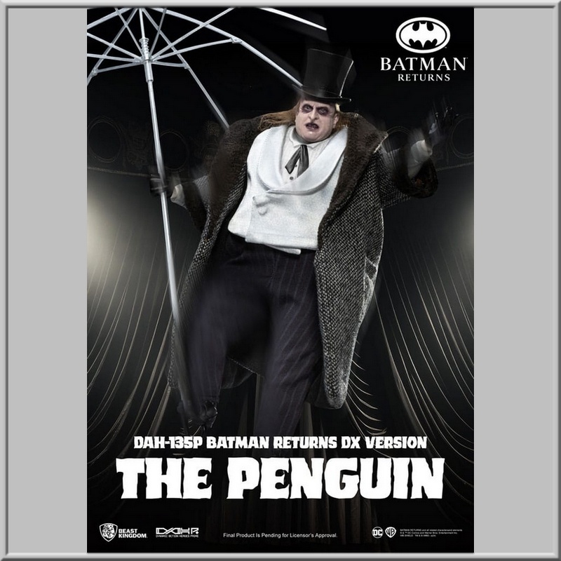 Un must per i fan e i collezionisti di Batman Returns, questa figura del Pinguino DX incarna l'astuzia, il carisma e l'indimenticabile minaccia della mente criminale di Gotham. Aggiungilo alla tua collezione... se ne hai il coraggio!