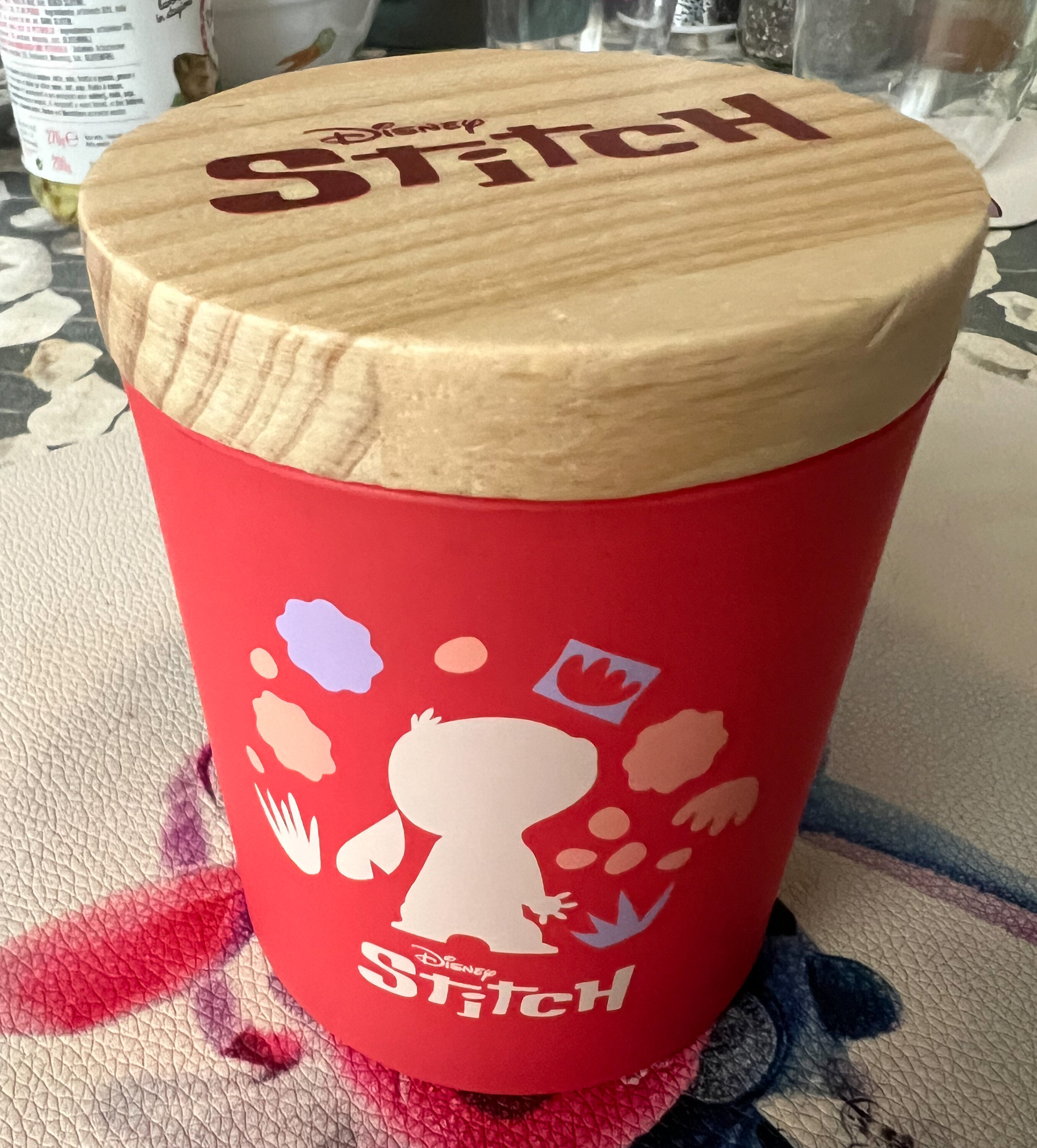 Presentata in un elegante contenitore di vetro rosa con una giocosa silhouette Stitch sul lato, la candela presenta un coperchio dal design accattivante ed è disponibile in una confezione regalo coordinata, il che la rende l'aggiunta perfetta alla collezione di qualsiasi fan Disney.