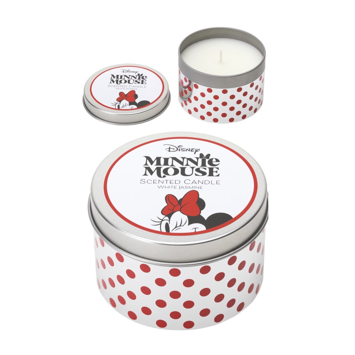 Presentata in una splendida scatola di metallo nei colori iconici del personaggio: rosso, bianco e argento, la scatola presenta la stampa a pois di Minnie Mouse tutt'intorno e il personaggio giocoso sul coperchio.