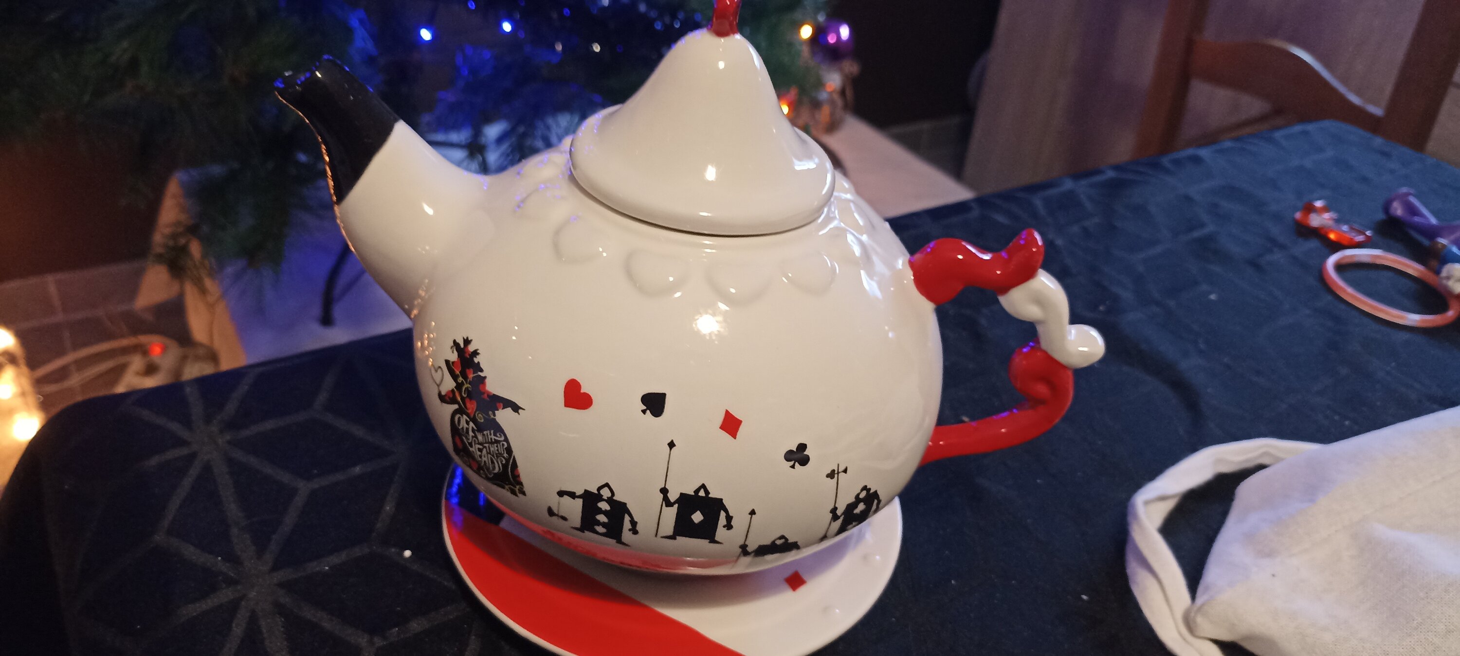 «Tagliategli la testa! » Questa frase vi è familiare? È normale, perché è il modo per la Regina di Cuori di risolvere tutti i suoi problemi! Se anche tu sei il tipo di persona che risolve i problemi allo stesso modo, allora questa bellissima teiera Alice nel Paese delle Meraviglie di è fatta apposta per te!