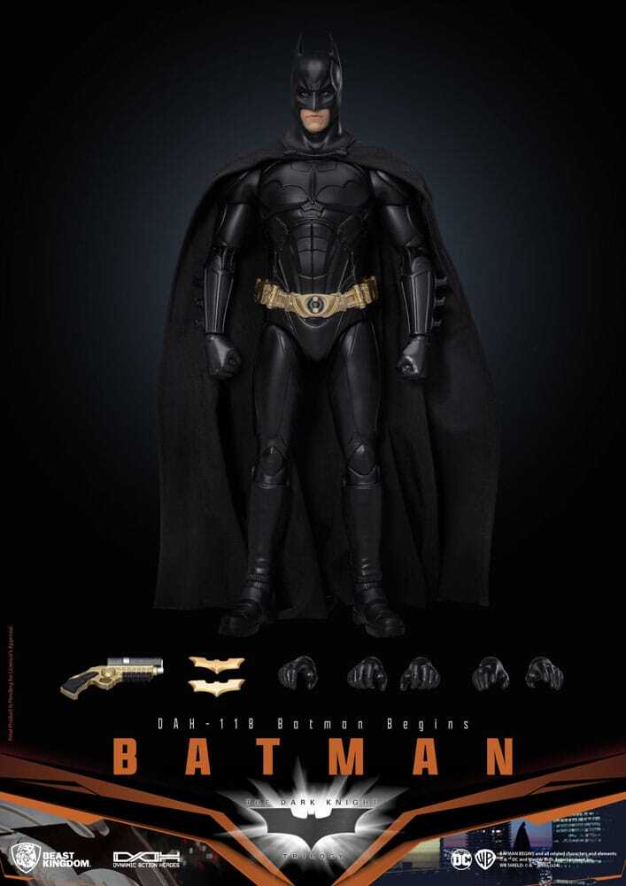 Batman, il Cavaliere Oscuro di Batman Begins (2005), prende vita in questa action figure Dynamic Action Heroes in scala 1/9, alta 21 cm. Catturando la presenza minacciosa, la determinazione e la brillantezza tattica del Batman di Christian Bale, questa action figure porta l'eroe cinematografico direttamente nella tua collezione.
