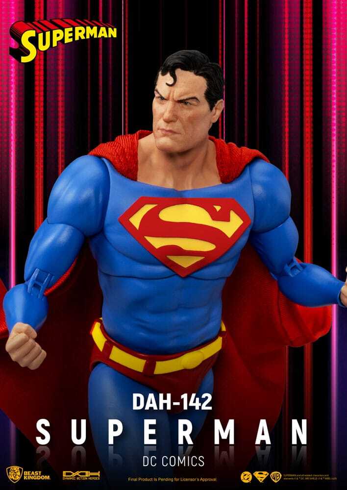 Superman, l'iconico Uomo d'Acciaio della DC Comics, prende vita in questa action figure Dynamic Action Heroes da 20 cm. Catturando la sua immensa forza, la sua presenza eroica e il suo incrollabile impegno per la giustizia, questa action figure porta uno degli eroi più leggendari direttamente nella tua collezione.