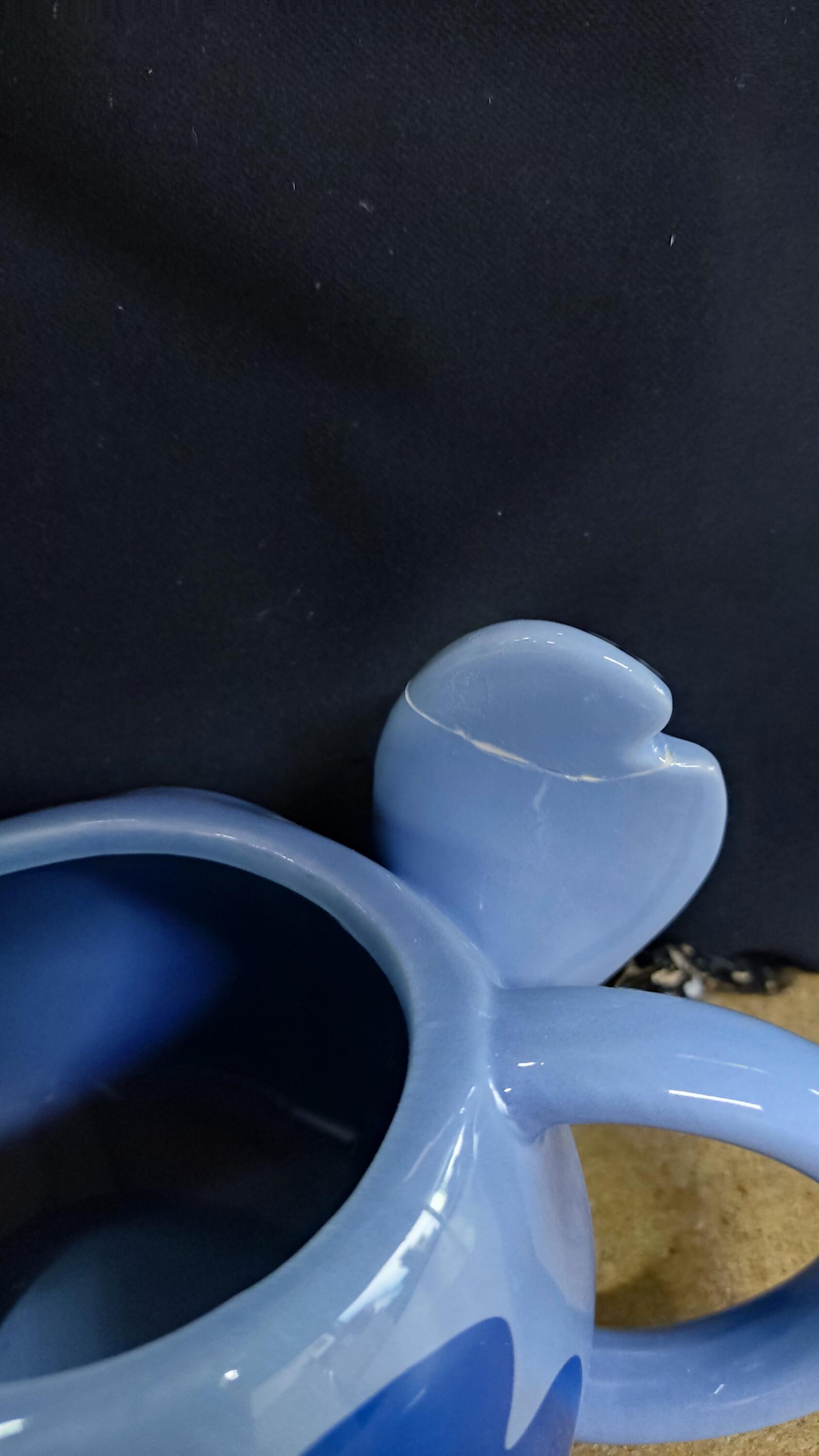 Difetti osservati: Rottura riparata sull'orecchio destro (ri-incollata).