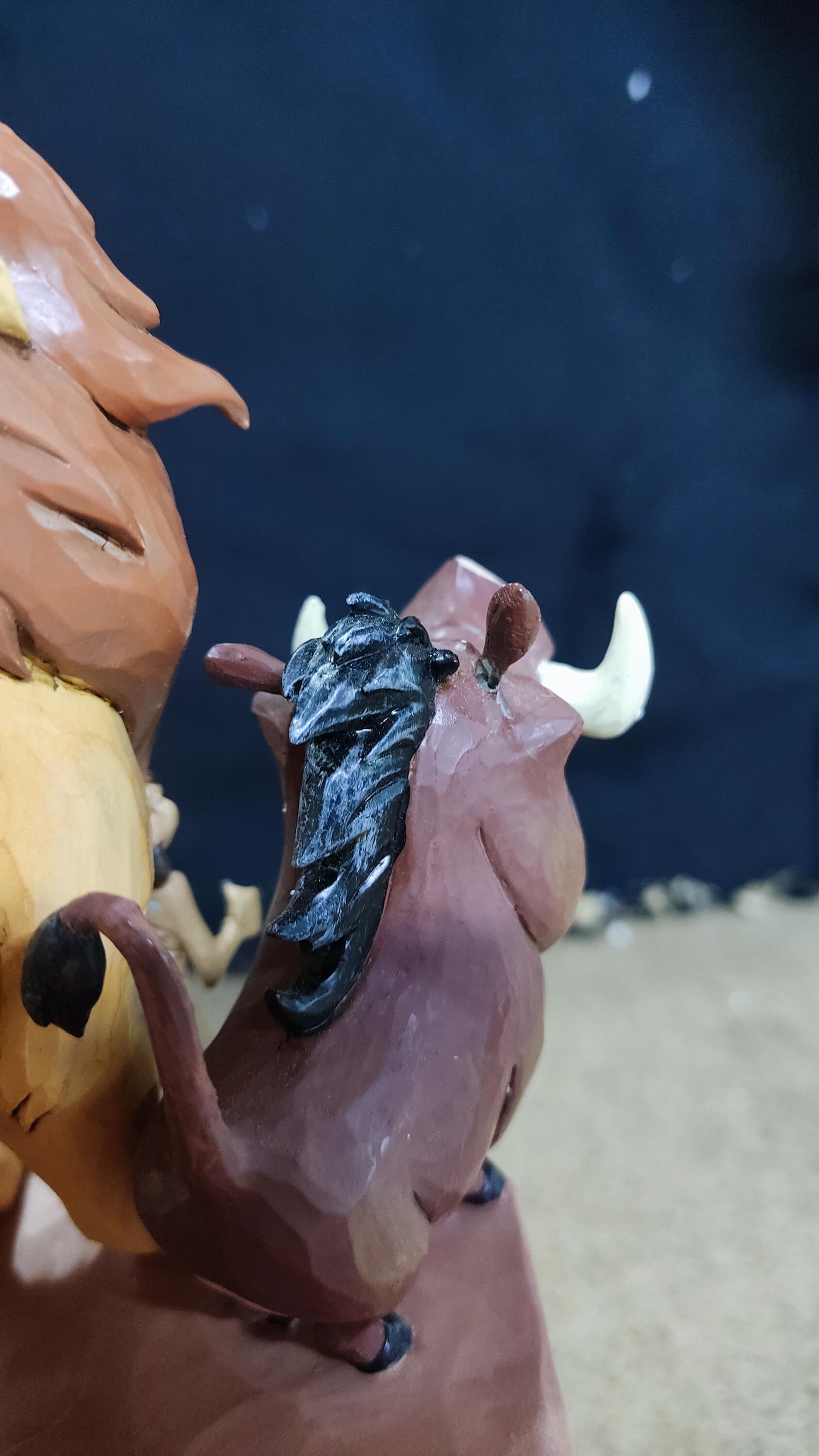 Difetti osservati:Rottura riparata sull'orecchio di Pumbaa (reincollata).