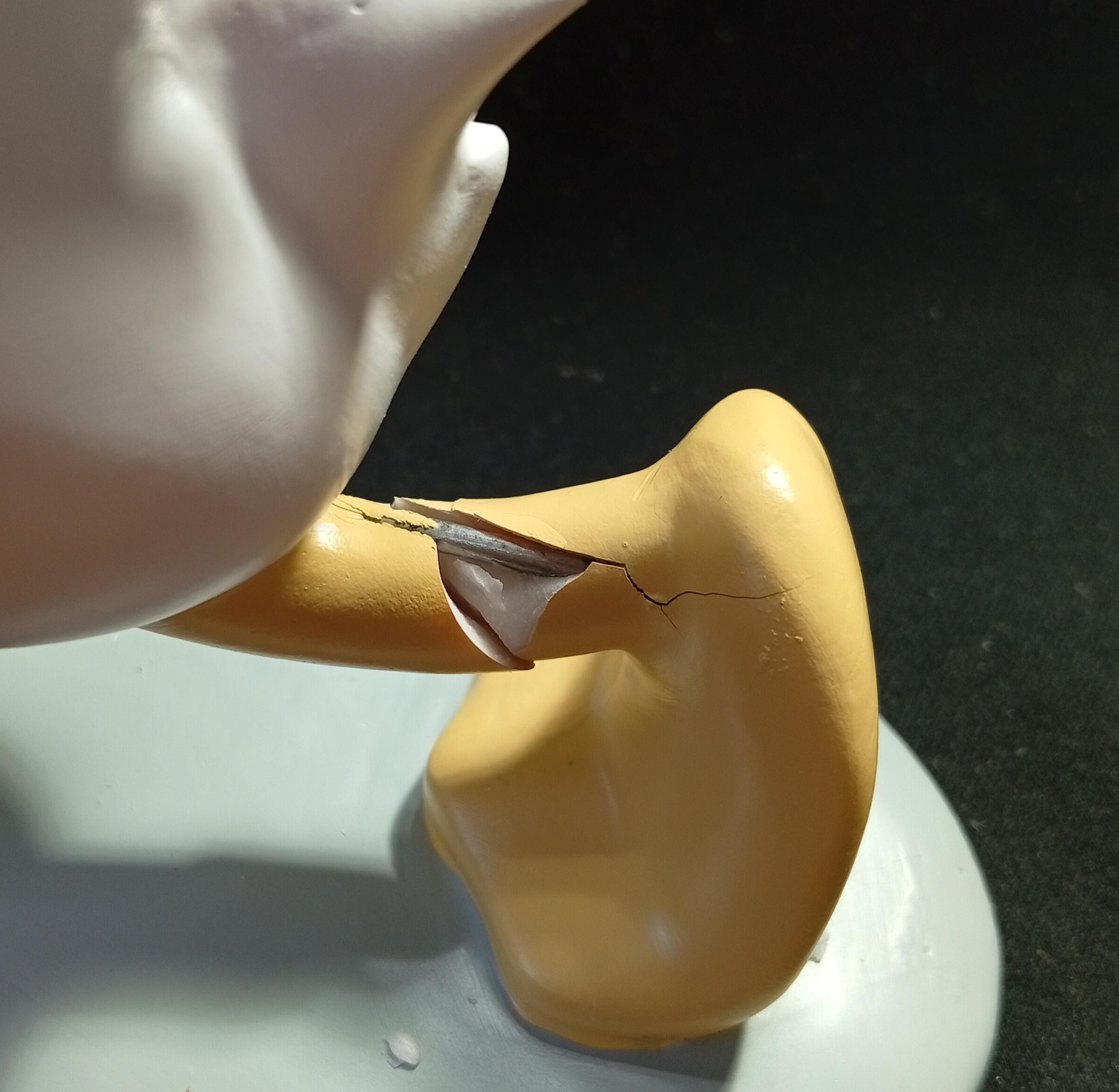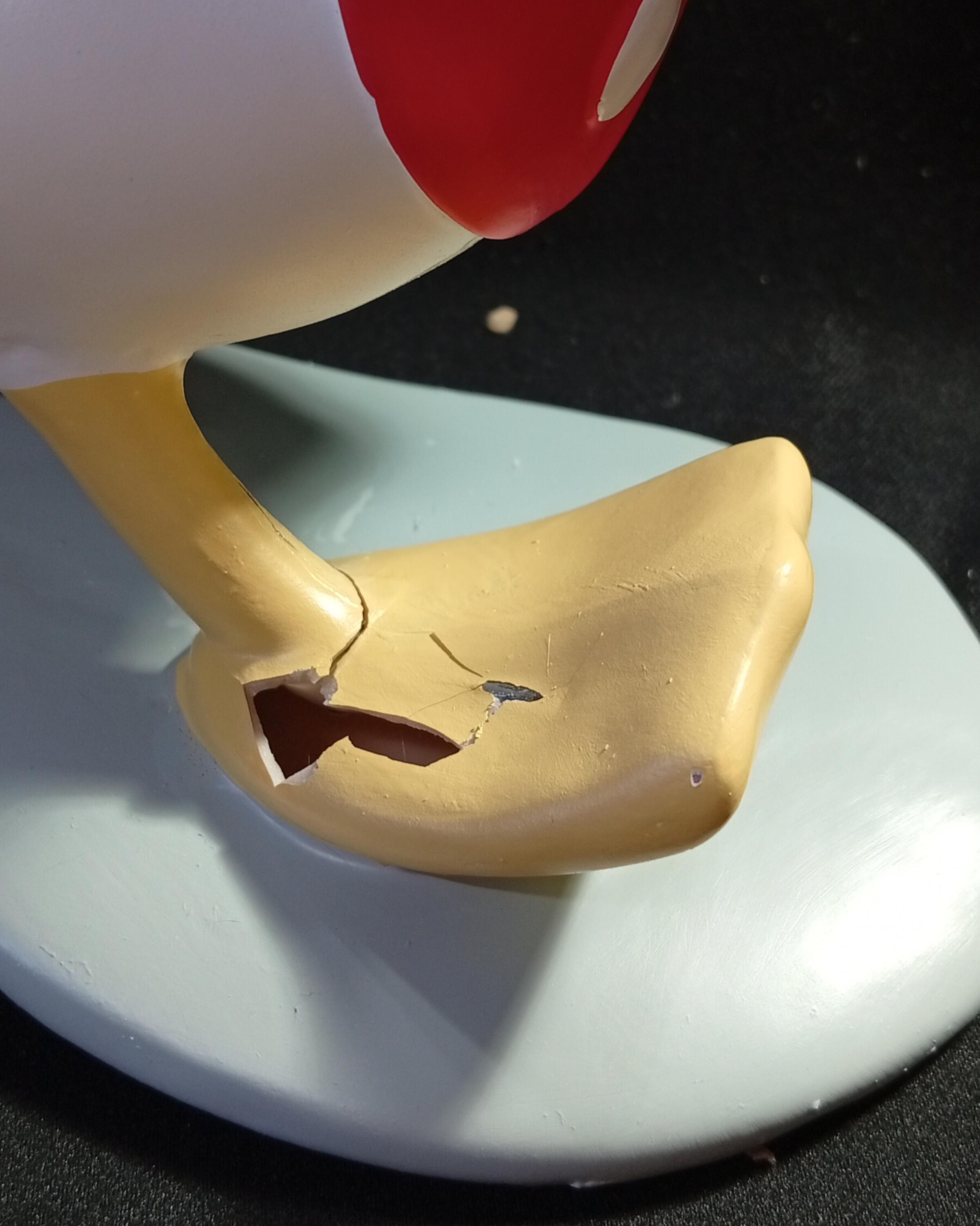 - Le gambe e i piedi di Paperino sono stati reincollati.