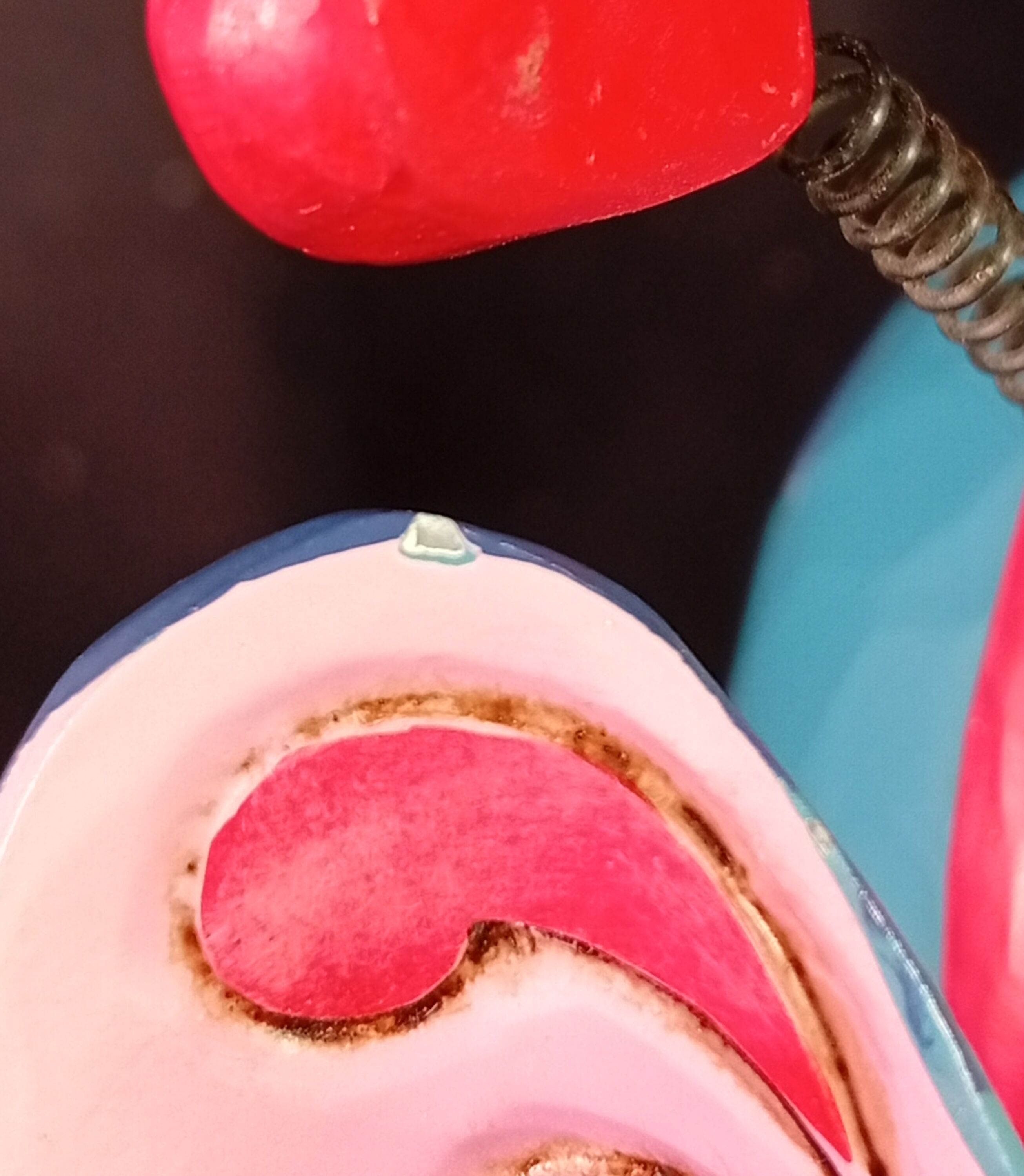 - Piccole scheggiature di vernice su entrambe le orecchie di Stitch.