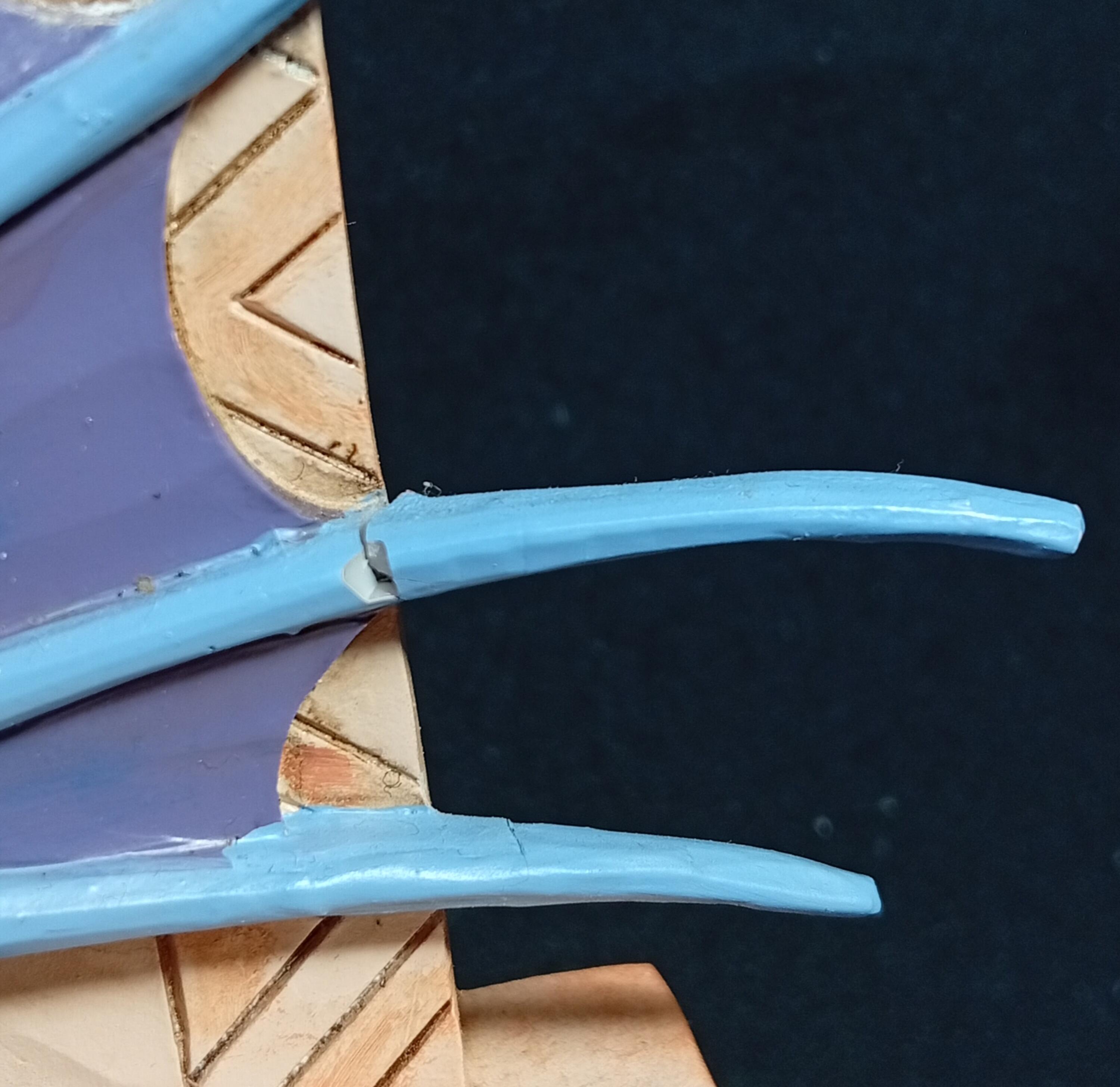 - Alcune punte sull'abito sono state reincollate.