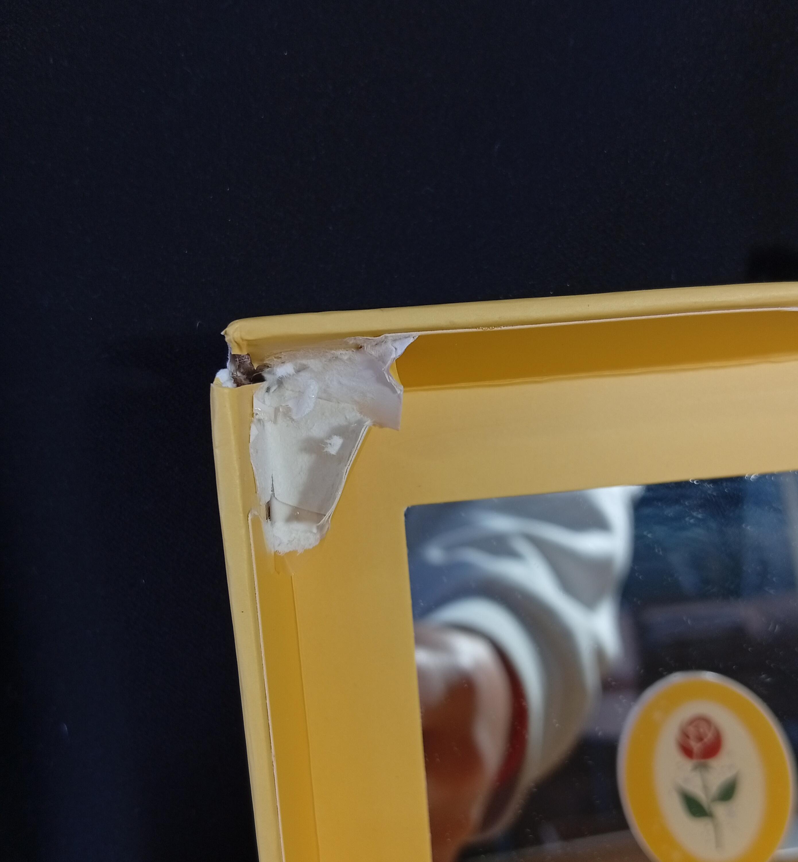 - L'angolo in alto a sinistra è strappato.