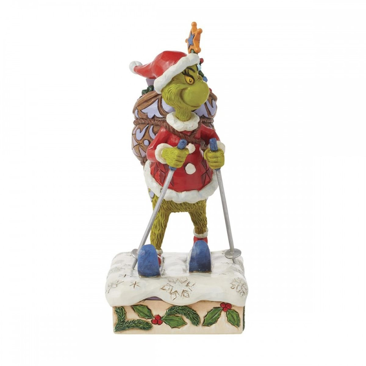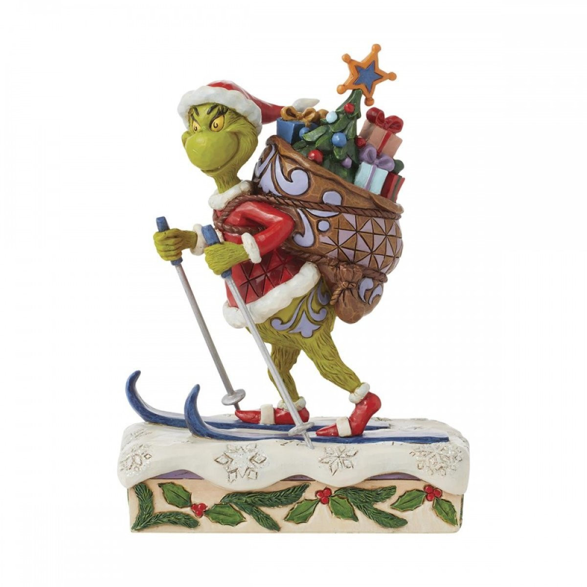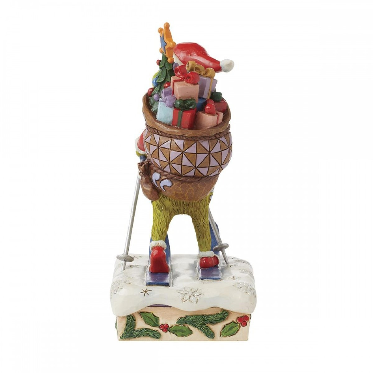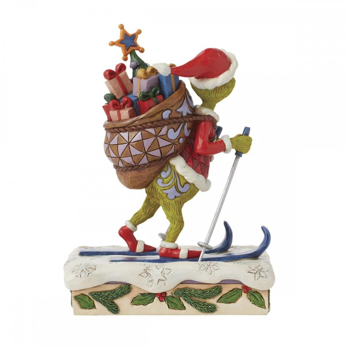 Questa statuetta raffigura il Grinch che scia attraverso le montagne innevate con un pesante sacco di regali e un albero sulla schiena. Vestito da Babbo Natale, non consegnerà questi doni, ma li ha semplicemente rubati dalle case di tutti i bambini di Chouville! Dalla collezione Grinch, progettata dal pluripremiato artista e scultore Jim Shore. Ogni statuetta è dipinto a mano e sono previste leggere variazioni di colore, rendendo ogni pezzo unico. Confezionato in una scatola regalo. Questi articoli non sono giocattoli per bambini. Destinato solo agli adulti.