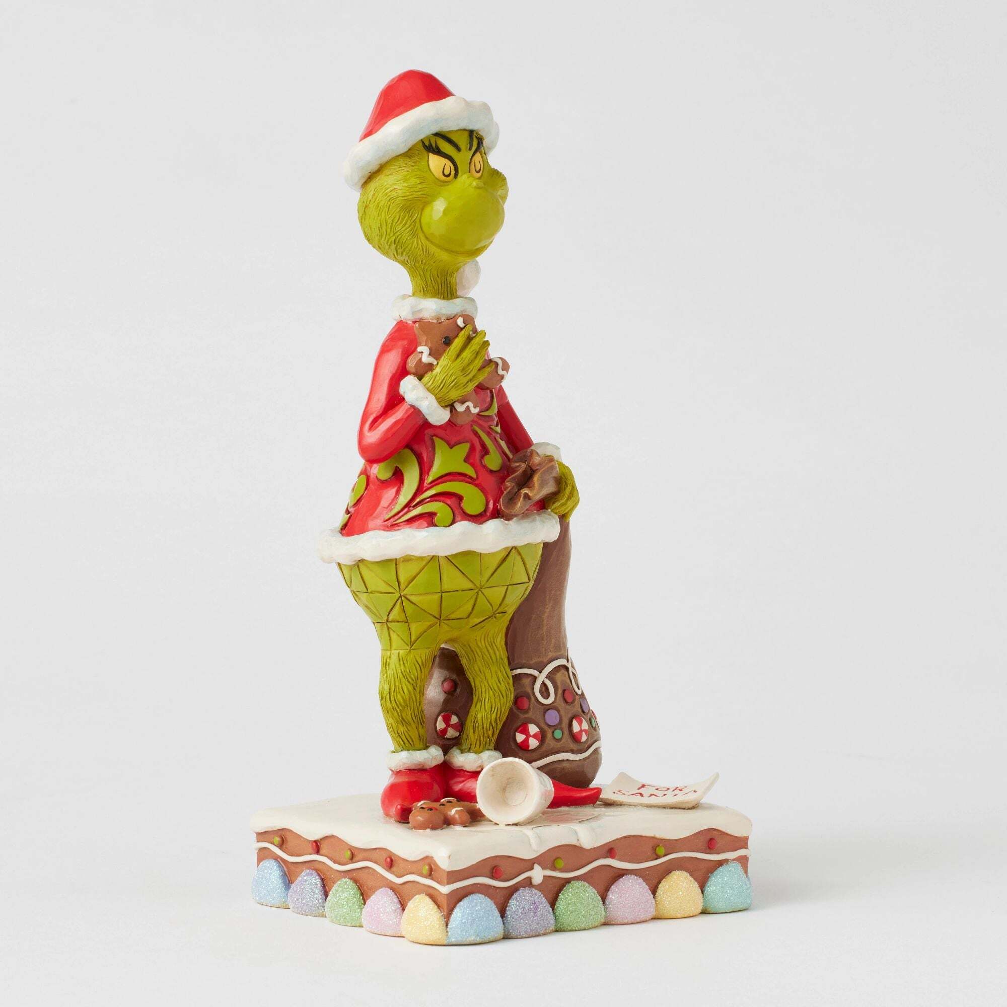 Vestito da Babbo Natale , con il suo sacco pronto a rubare i regali, il Grinch si abbuffa di pan di zenzero e rovescia il latte di Natale. Con i suoi dettagli intricati e i caratteristici disegni Jim Shore , questa statuetta cattura perfettamente lo spirito malizioso del Grinch. Progettata dal pluripremiato artista e scultore Jim Shore per la Grinch Collection. Queste statuette non sono giocattoli per bambini. Destinate solo agli adulti. Altezza: 20,5 cm