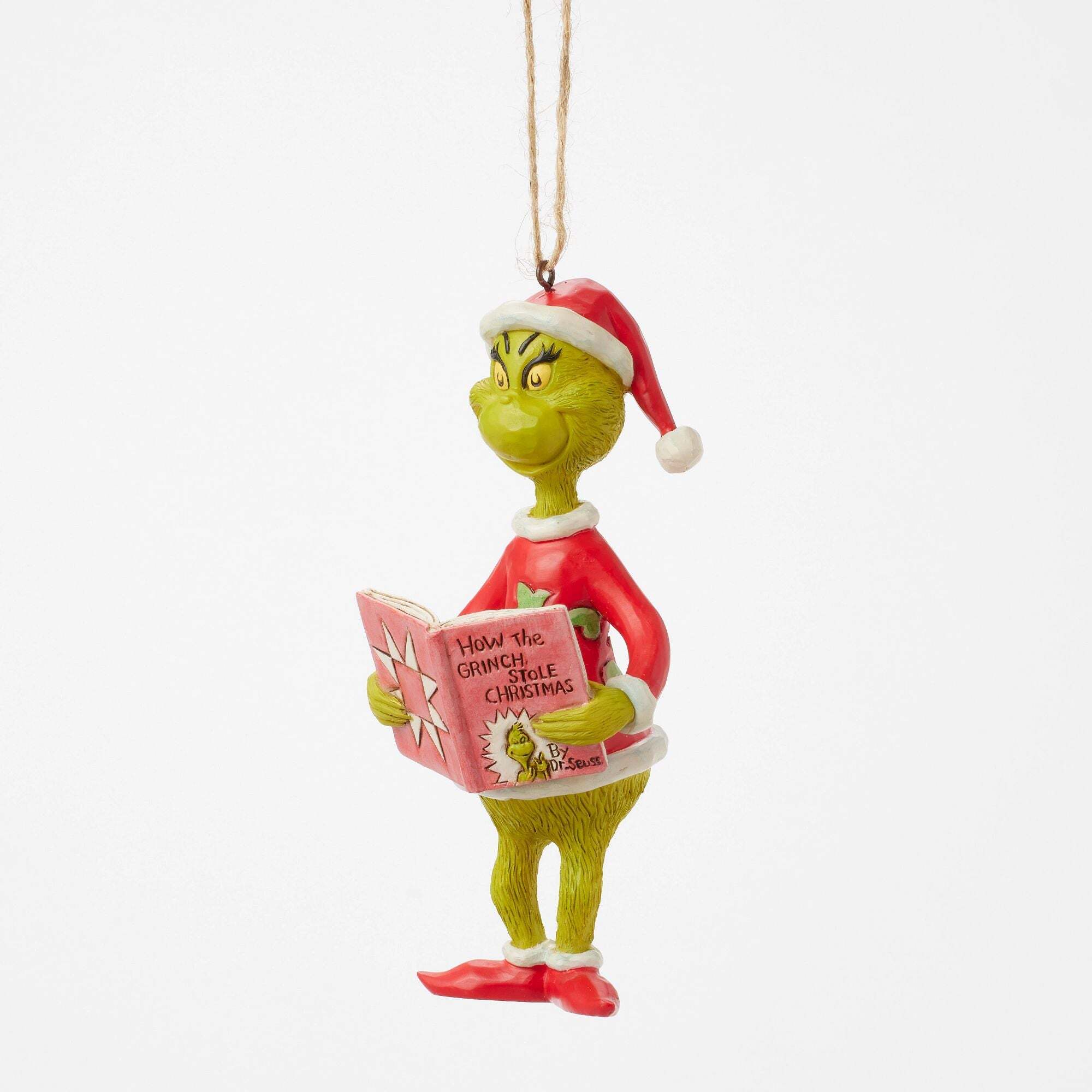 Il Grinch, vestito con un abito Natale , legge attentamente una copia di "Come il Grinch rubò il Natale" del Dr. Seuss. Questa decorazione da appendere Jim Shore cattura questa scena affascinante, mentre il Grinch si immerge nella sua storia. Progettata dal pluripremiato artista e scultore Jim Shore per la Grinch Collection. Queste statuette non sono giocattoli per bambini. Destinate esclusivamente all'uso da parte di adulti. Altezza: 13,5 cm