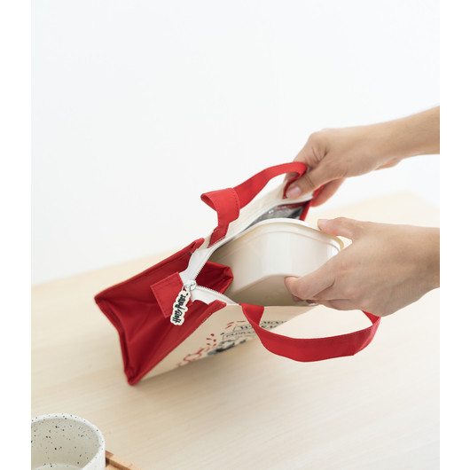Borsa portapranzo 100% poliestere con fodera interna in alluminio. Ha una tasca laterale, manici e una cerniera.
