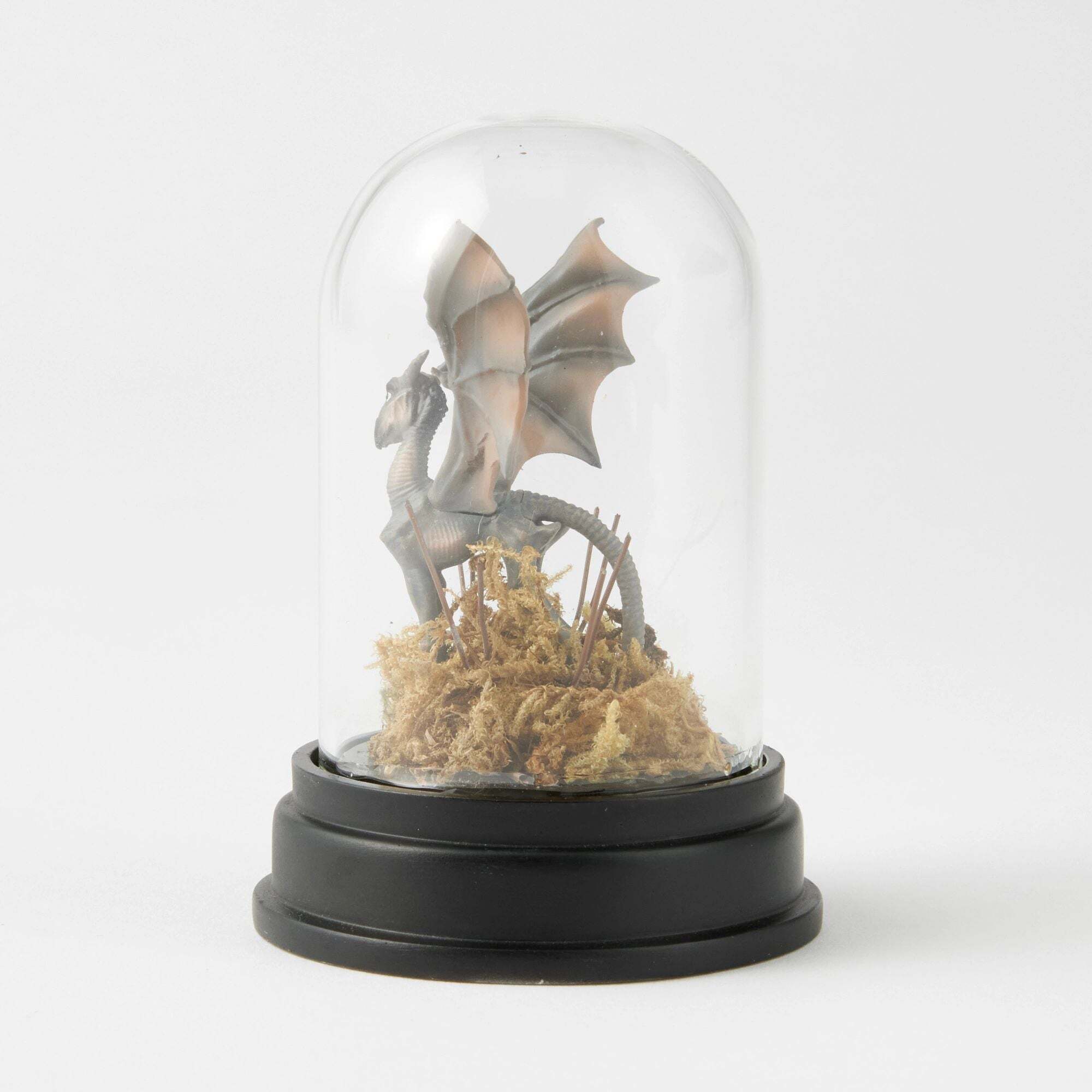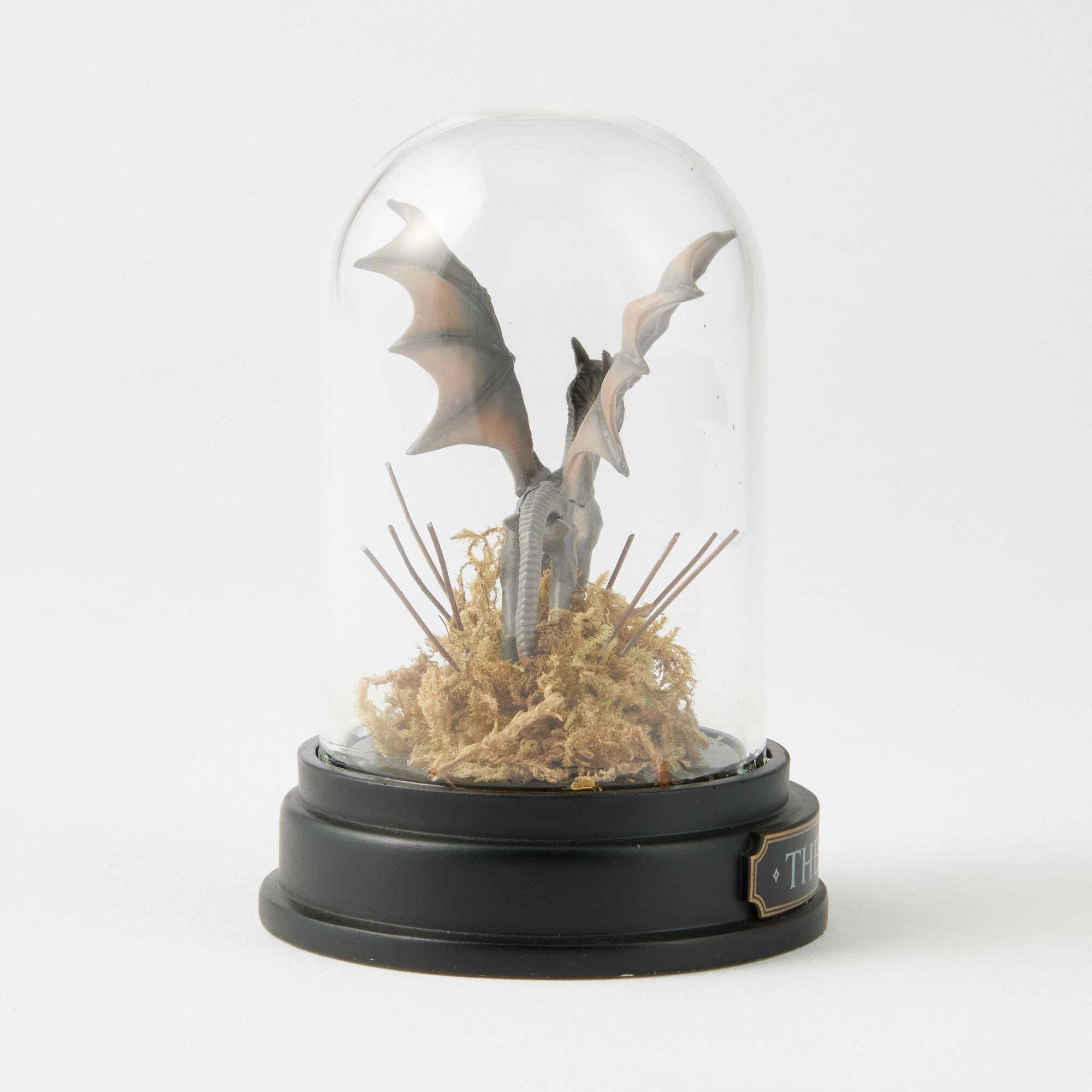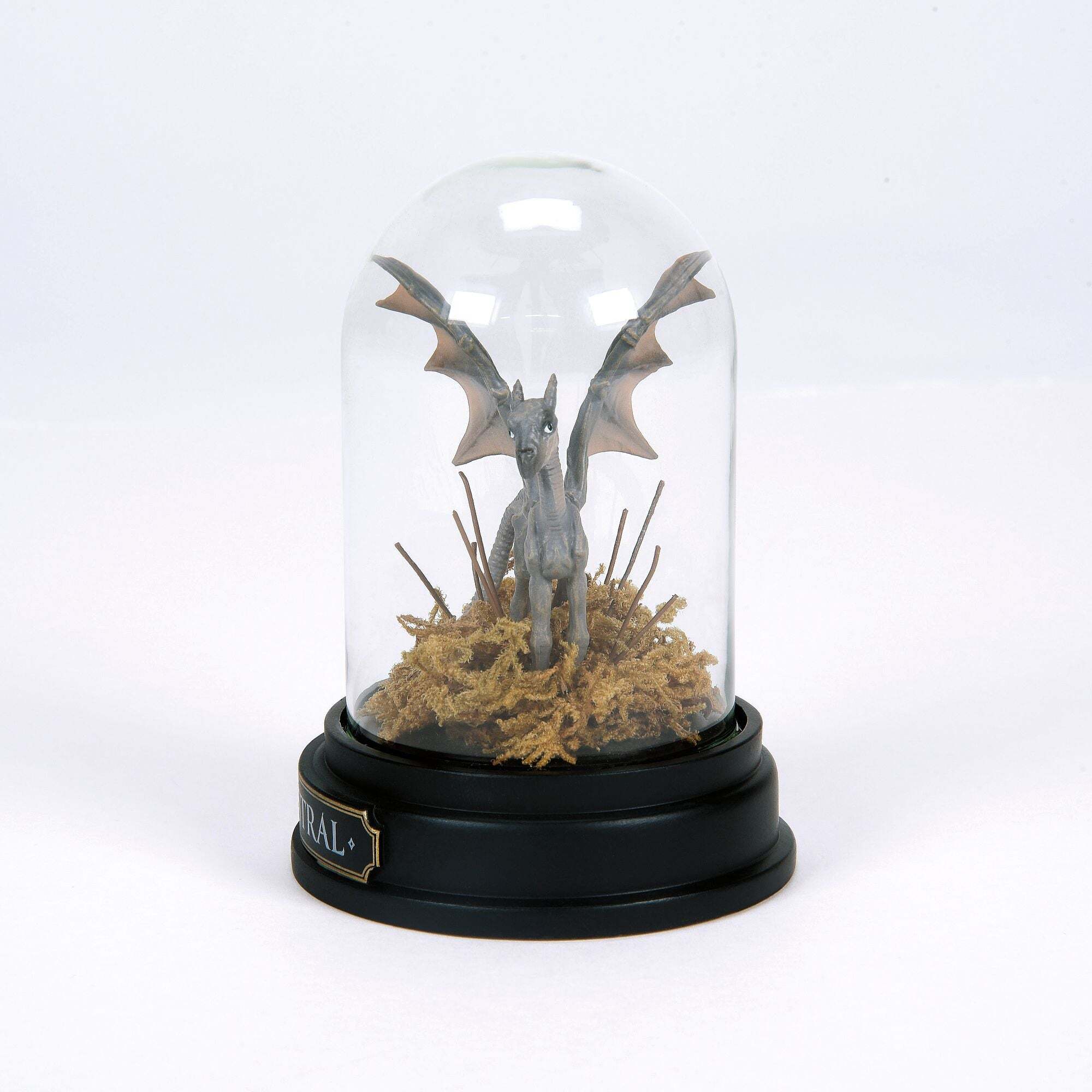 Questo Thestral alato simboleggia la bellezza della vita e della morte nel mondo magico attraverso il suo legame con l'aldilà. Esplora i misteri del mondo magico con questa statuetta in miniatura scolpita e dipinta a mano, elegantemente presentata sotto una cupola di vetro trasparente. Un oggetto accattivante per ogni appassionato Harry Potter . Il tutto confezionato in una confezione completamente brandizzata. Altezza: 7,5 cm