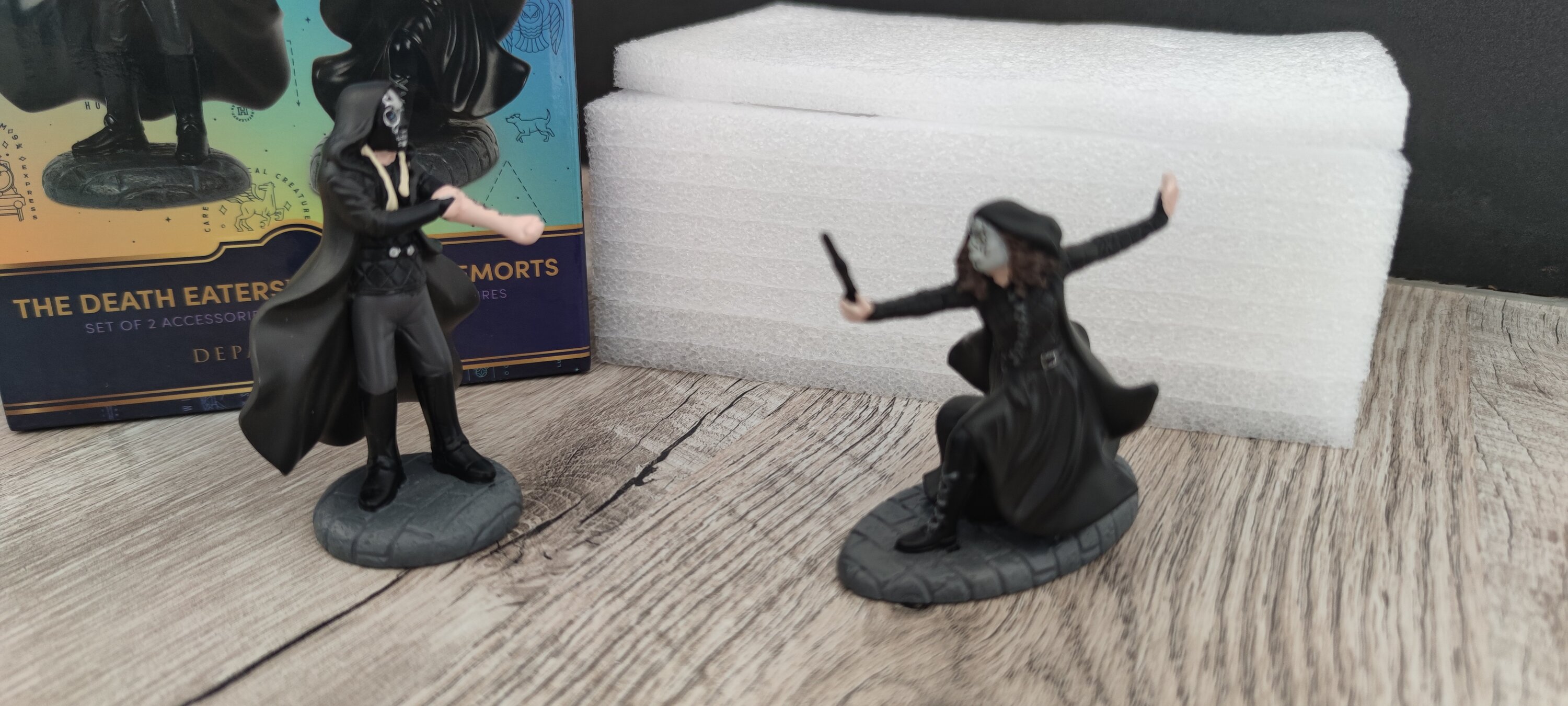 Lucius Malfoy e Bellatrix Lestrange sono tra i Mangiamorte più fanatici, alla disperata ricerca della supremazia purosangue e completamente devoti a Lord Voldemort. Ogni statuetta è in resina dipinta a mano e sono previste lievi variazioni di colore, rendendo ogni pezzo unico. Confezionata in una scatola regalo. Queste statuette non sono giocattoli per bambini. Destinate solo agli adulti.
