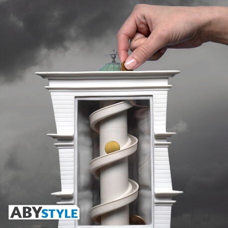 Tieni i tuoi soldi al sicuro nella banca magica più sicura e famosa, la Gringott! Metti galeoni, falci e zellini in questo salvadanaio Harry Potter di ABYstyle e guarda le monete turbinare nelle camere sotterranee della banca, ma fai attenzione ai goblin, che terranno gli occhi aperti!
