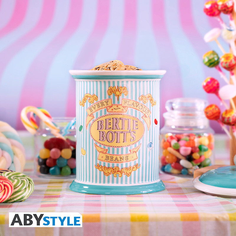 Riscopri l'atmosfera mitica del negozio di Mielandia situato a Hogsmeade con tutti i suoi bei colori, i suoi dolci leggendari come i fagiolini tutti gusti o le caramelle frizzanti di Bertie Bott, in questa magnifica scatola per biscotti Harry Potter di ABYstyle.