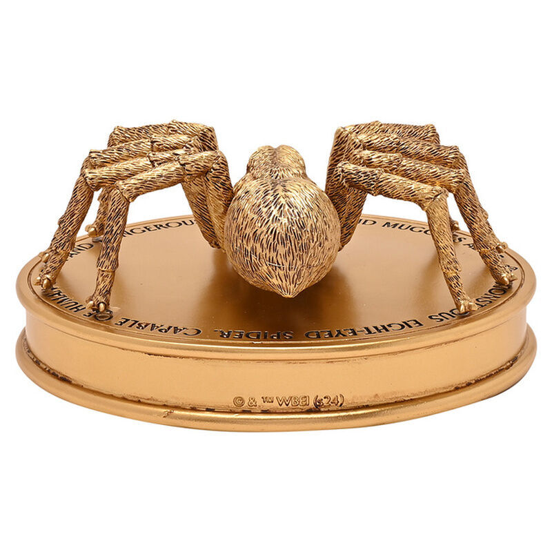- Ricca di dettagli e rifinita in una tonalità dorata, questa statuetta di Aragog è posta su una base con la scritta "The Acromantula"