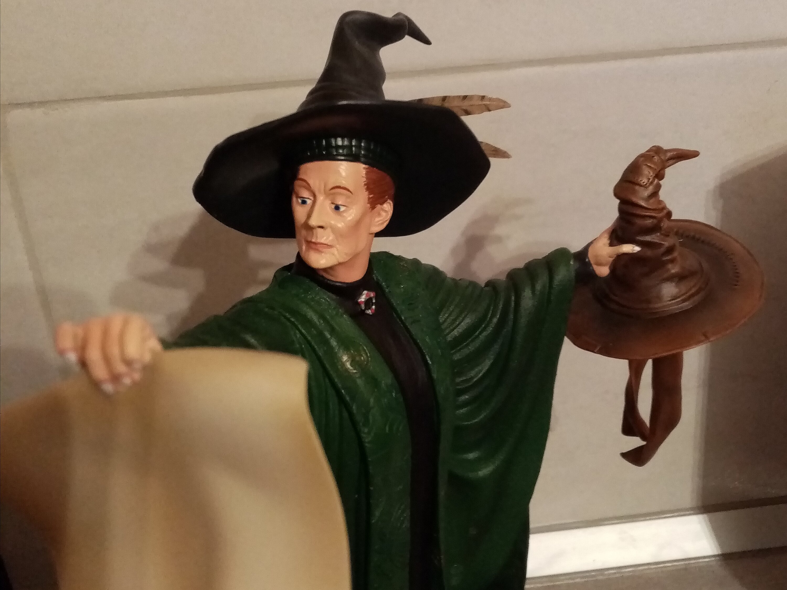 Sono felicissima di questa splendida statuetta della Professoressa McGranitt. Il volto è straordinariamente simile a quello dell'attrice. La posa è splendida. I dettagli sono meticolosi; persino i nomi degli studenti sono incisi sul retro della pergamena. Questa statuetta è una splendida aggiunta alla mia collezione di Harry Potter.