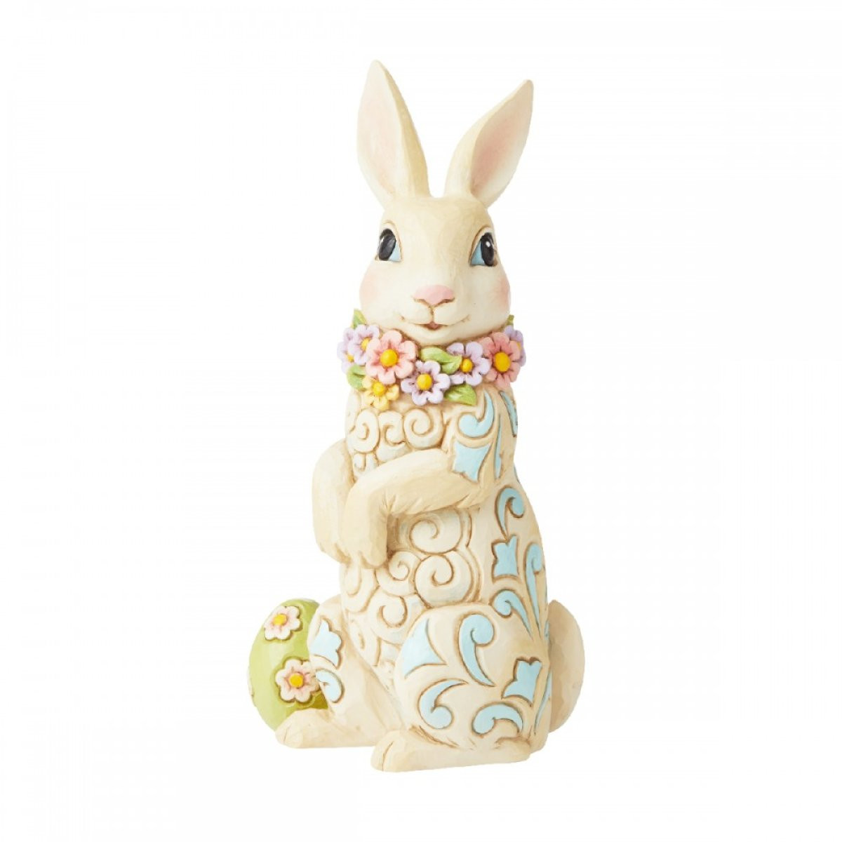 Statuetta di un coniglio con una collana di fiori e un uovo Pasqua . Figura della collezione Heartwood Creek , disegnata dal pluripremiato artista e scultore Jim Shore. Ogni statuetta è dipinto a mano e sono previste leggere variazioni di colore, rendendo ogni pezzo unico. Confezionato in una scatola regalo. Questi articoli non sono giocattoli per bambini. Destinato agli adulti.
