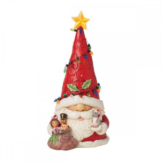 Statuetta Babbo Natale Gnomo Con Ghirlande Luminose - Jim Shore Heartwood Creek
