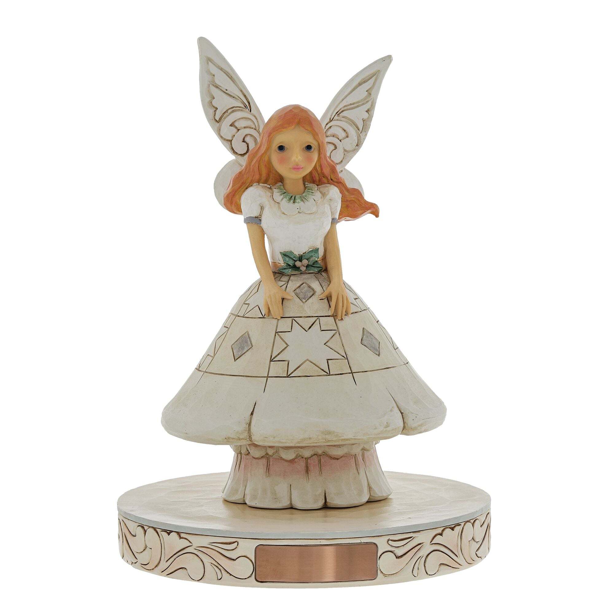 Questa statuetta raffigurante una fata con una gonna a forma di fungo aggiunge magia e un tocco di stravaganza alla linea White Woodland della collezione Heartwood Creek , disegnata dal pluripremiato artista e scultore Jim Shore. Ogni statuetta è dipinta a mano e sono possibili lievi variazioni di colore, rendendo ogni pezzo unico. Confezionata in una scatola regalo. Questi articoli non sono giocattoli per bambini. Destinati esclusivamente all'uso da parte di adulti. Altezza: 15 cm