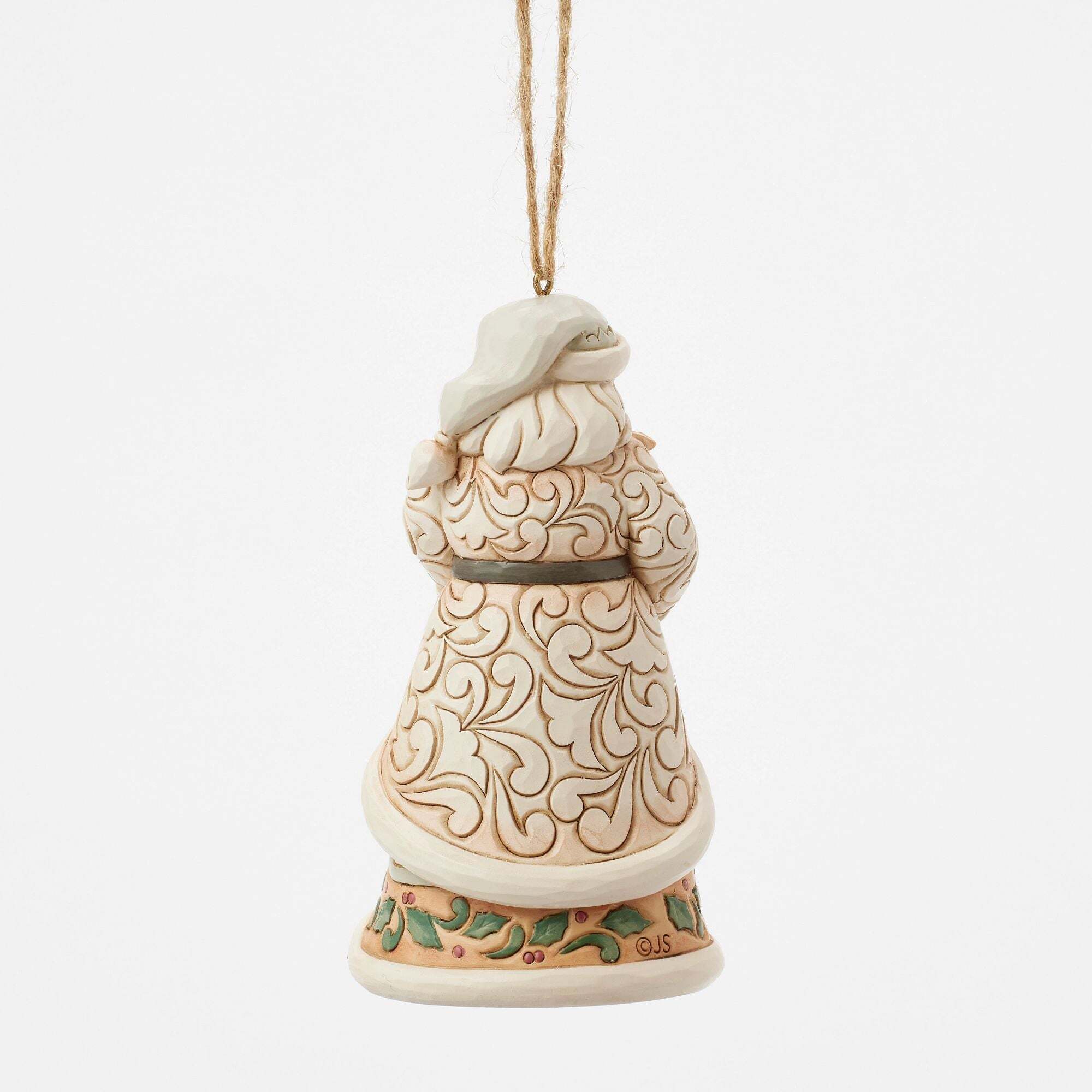 Questa decorazione da appendere Jim Shore raffigura Babbo Natale che tiene teneramente in braccio un cerbiatto, incarnando lo spirito di compassione e gioia. Il suo mantello, splendidamente dettagliato, presenta un'affascinante scena del Polo Nord, con le renne che saltellano allegramente. Dalla collezione Heartwood Creek , disegnata dal pluripremiato artista e scultore Jim Shore. Ogni statuetta è dipinta a mano e sono possibili lievi variazioni di colore, rendendo ogni pezzo unico. Destinato solo a un pubblico adulto. Altezza: 11,5 cm