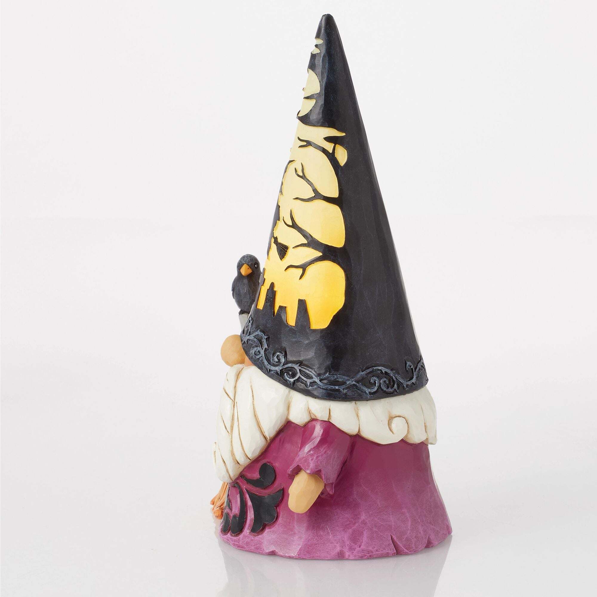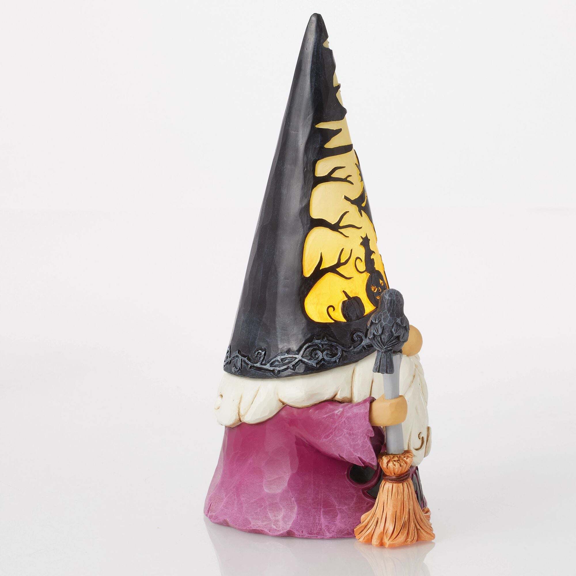Lasciatevi incantare dallo spirito di Halloween con questa splendida statuetta di uno gnomo strega firmata Jim Shore. Il suo cappello nasconde un cimitero luminoso, dove una strega sembra volare nella notte per uno spettacolo magico.
