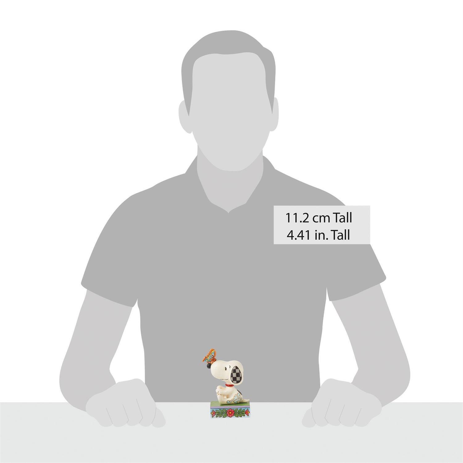 In questo incantevole disegno Jim Shore , Snoopy è seduto sull'erba, su un palco decorato con fiori primaverili, mentre si gode l'aria fresca. Una splendida farfalla con dettagli a forma di roselline atterra delicatamente sul naso di Snoopy, invitando all'amicizia e all'equilibrio.
