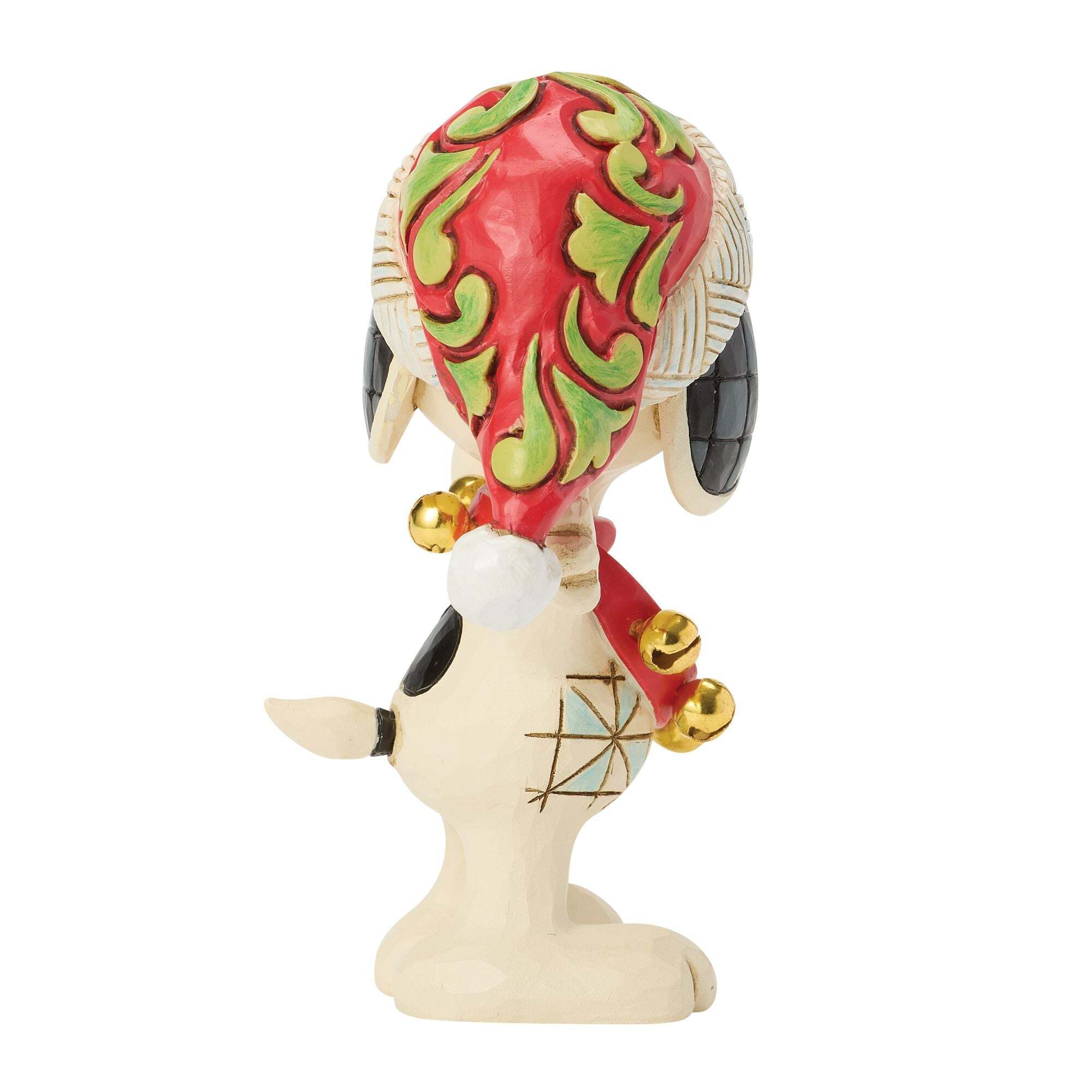 Coiffé d'un bonnet de Noël festif à motivi tourbillonnants, Snoopy fait tinter ses grelots nella più pura tradizione delle feste con questa mini-figurine Jim Shore. Compatto e colorato, questo pezzo porterà un tocco magico di Peanuts alla tua decorazione di Noël.