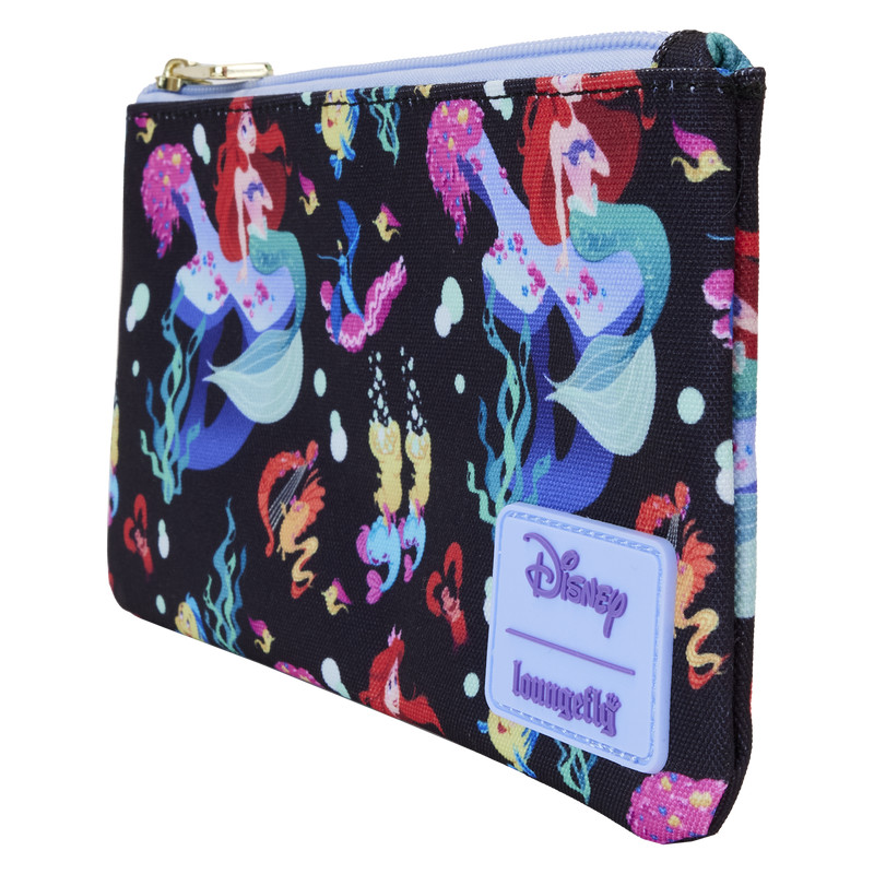 The Loungefly Disney La Sirenetta 35° Anniversario Il portafoglio da polso in nylon con stampa integrale "Life is the Bubbles" è realizzato in nylon. Cerniere del portafoglio chiuse con hardware in metallo color oro. Ulteriori caratteristiche includono dettagli stampati. Prendi nota della fodera interna coordinata.