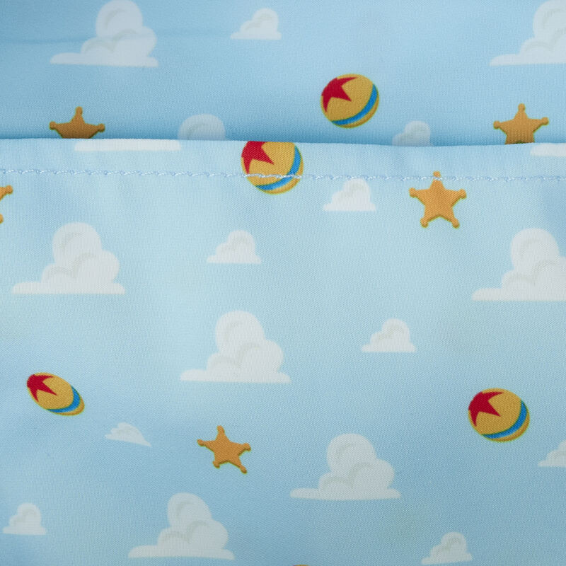 Il mini zaino in nylon AOP di Toy Story Movie Collab Loungefly presenta hardware argento lucido e dettagli stampati. Prendi nota della fodera interna con marchio Loungefly.