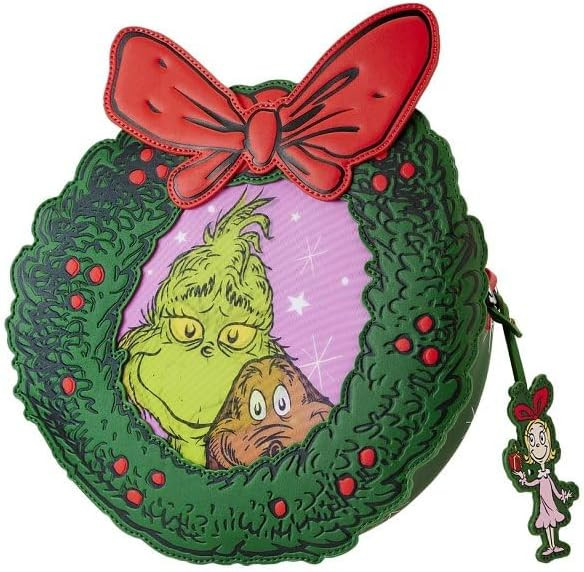 DR SEUSS GRINCH borsa a tracolla corona di Natale - DISNEY LOUNGEFLY DR SEUSS GRINCH borsa a t...