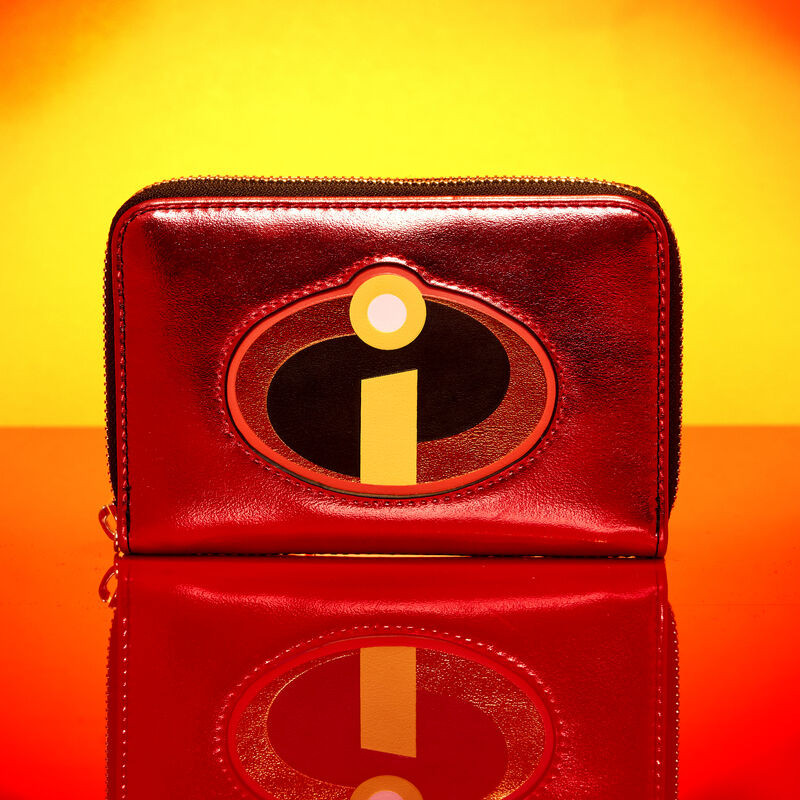 Il portafoglio Loungefly Pixar Incredibili con zip è caratterizzato da pelle vegan metallizzata e glitterata (poliuretano ), chiusura con cerniera, finiture in oro lucido, quattro slot per carte, finestra trasparente per documenti fustellati, dettagli applicati e stampati, fodera coordinata del 20° anniversario.