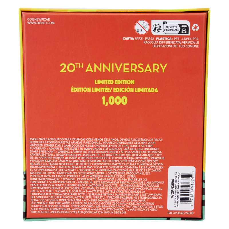 Il portafoglio Loungefly Pixar Incredibili con zip presenta spilla smaltata, dettagli della parte incernierata, riempimento in smalto glitterato, hardware color canna di fucile, incisione della corona Funko/ Loungefly (sul retro), numero di 1.000 pezzi in edizione limitata, scatola da collezione per vetrina, confezione per il 20° anniversario.