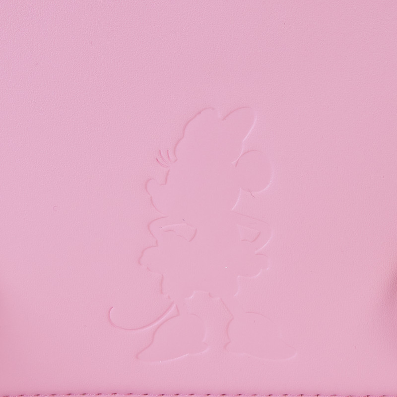 La Loungefly Disney Minnie è realizzata in pelle vegana (poliuretano). Tracolla regolabile (staccabile). Spallacci per zaino convertibili. Tasca frontale con cerniera. Hardware in oro lucido. Applicazione, fiocco in rilievo, 3D e dettagli stampati. Fodera interna coordinata
