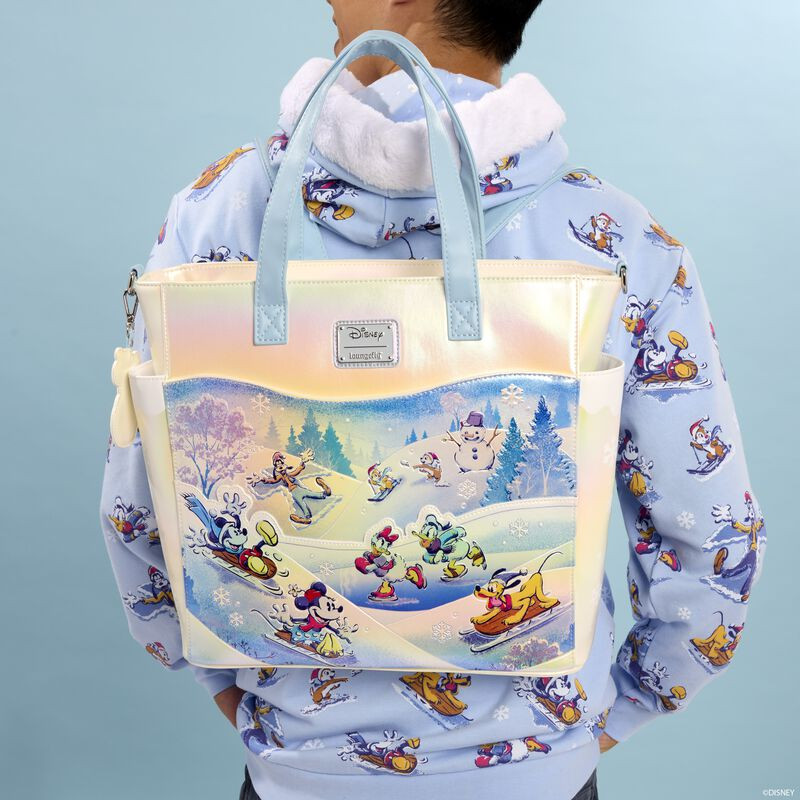 Non c'è niente di meglio di una giornata di neve! Unisciti a Topolino e ai suoi amici mentre esplorano le meraviglie dell'inverno. Decorata con dettagli iridescenti, questa sac tote convertibile utilizza una colorazione ghiacciata per i personaggi che conosciamo e amiamo. Con spallacci da zaino, tracolla e manici, questa borsa può essere indossata come preferisci! Questo accessorio ha un sacco di spazio per riporre i tuoi effetti personali e manterrà i fan Disney alla moda per tutta la stagione.
