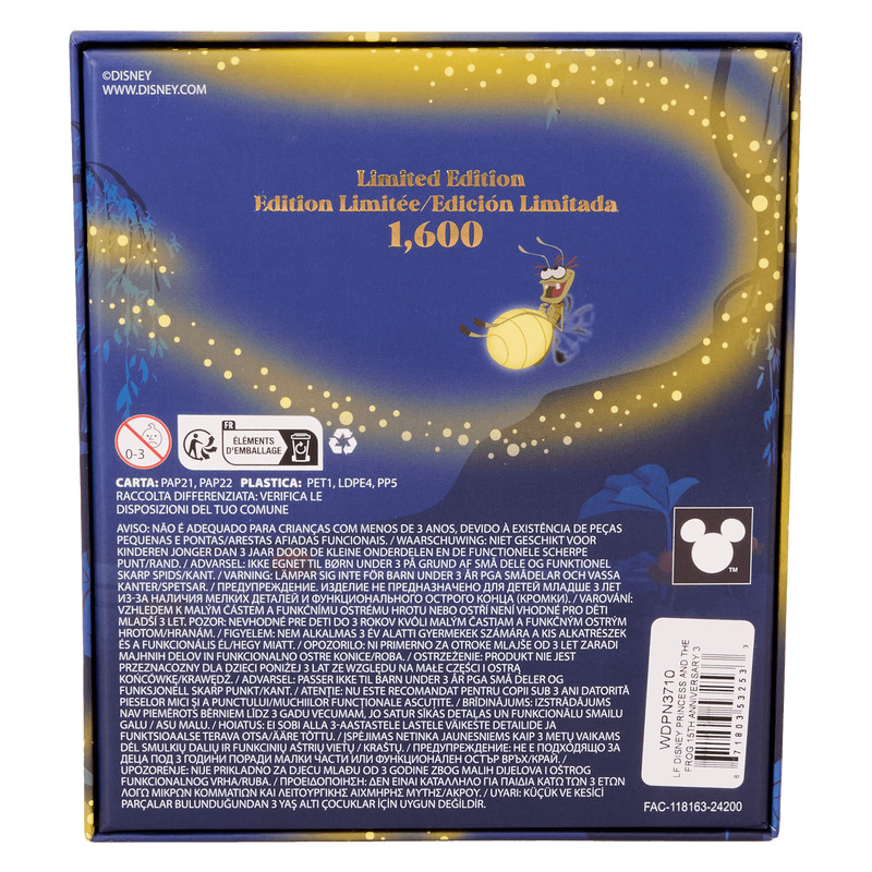 Caratteristiche: spilla smaltata, finiture dorate lucide, dettagli scorrevoli e fosforescenti, corona Funko/ Loungefly in rilievo (sul retro), edizione limitata di 1.600 pezzi, scatola da collezione con esposizione in vetrina