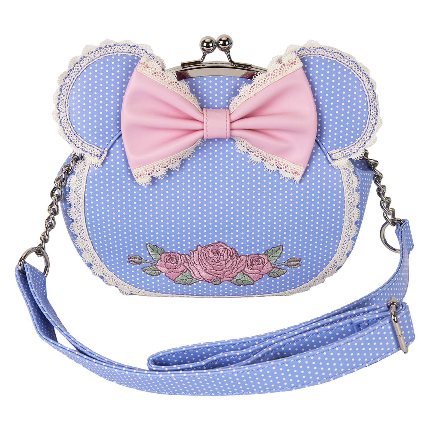 La Moda è in pieno fiore con questa sac bandoulière "kiss-lock" di Paperina Disney. I particolari dettagli Paperina e la chiusura a griffe intrecciate rendono questo accessorio deliziosamente retrò. Le sue orecchie applicate, decorate con una stampa a pois, spuntano dalla parte superiore, e il bordo in pizzo aggiunge un tocco delicato. Al centro è presente un fiocco rosa 3D e rose ricamate che si aprono come dettaglio decorativo. Metti in valigia i tuoi oggetti essenziali quotidiani, parti per un'avventura e guarda il divertimento sbocciare.
