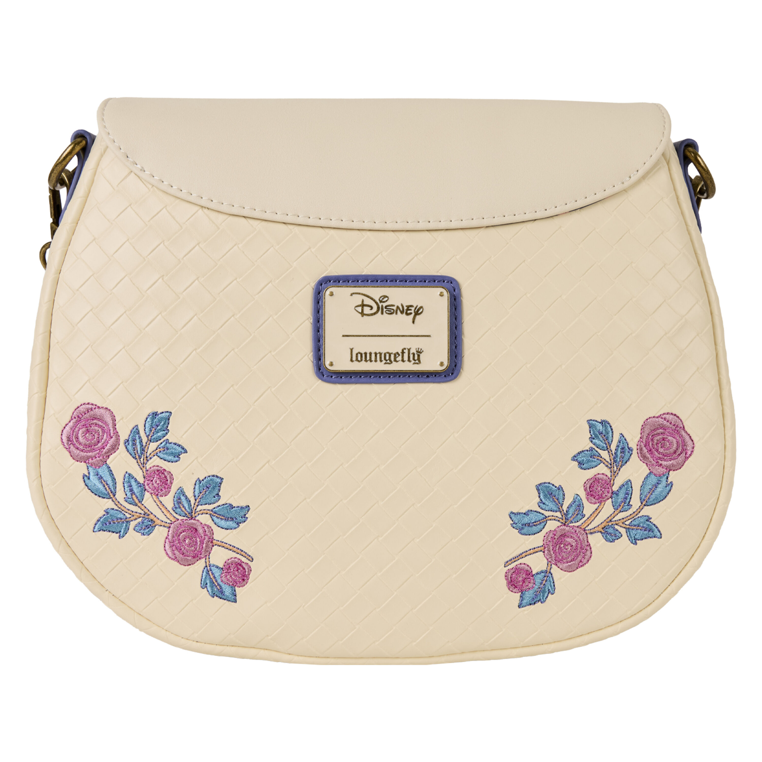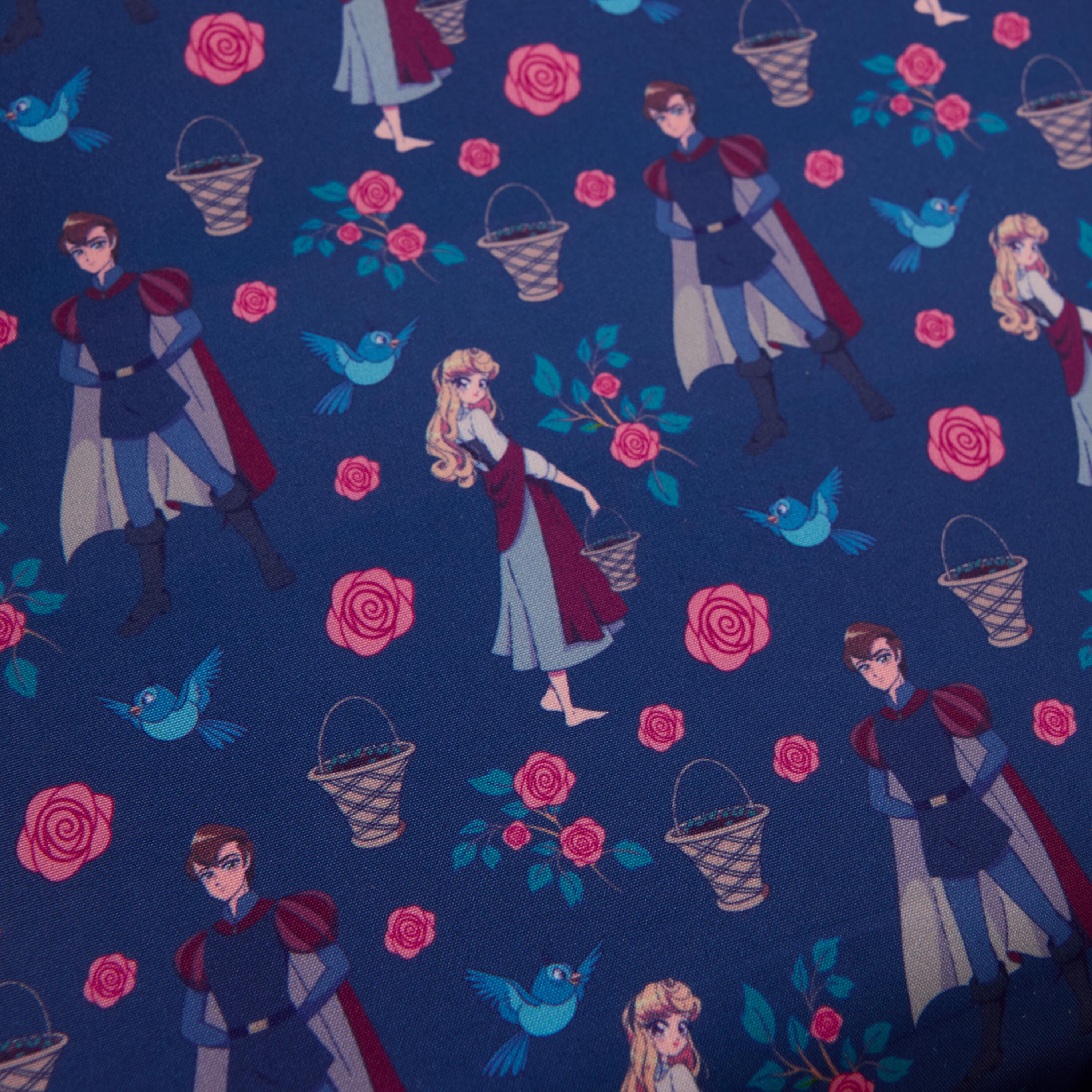 Ahhh, adoriamo i momenti floreali da sogno! Il principe Filippo e la principessa Aurora della Disney sorridono sul davanti di questa borsa. Sono circondati da rose ricamate. Troverai anche un ciondolo smaltato a forma di rosa sulla patta anteriore.