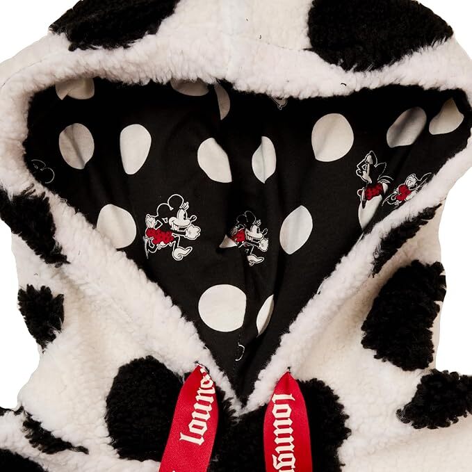 Regalati un look comodo ed elegante con la felpa con cappuccio Loungefly Disney Minnie Rocks the Dots Sherpa. Con gli iconici fiocchi di Minnie e un design a pois bianchi e neri, questa felpa con cappuccio unisce moda e comfort. Perfetta per ogni fan Disney, questa felpa con cappuccio è un must-have per le giornate più fredde.